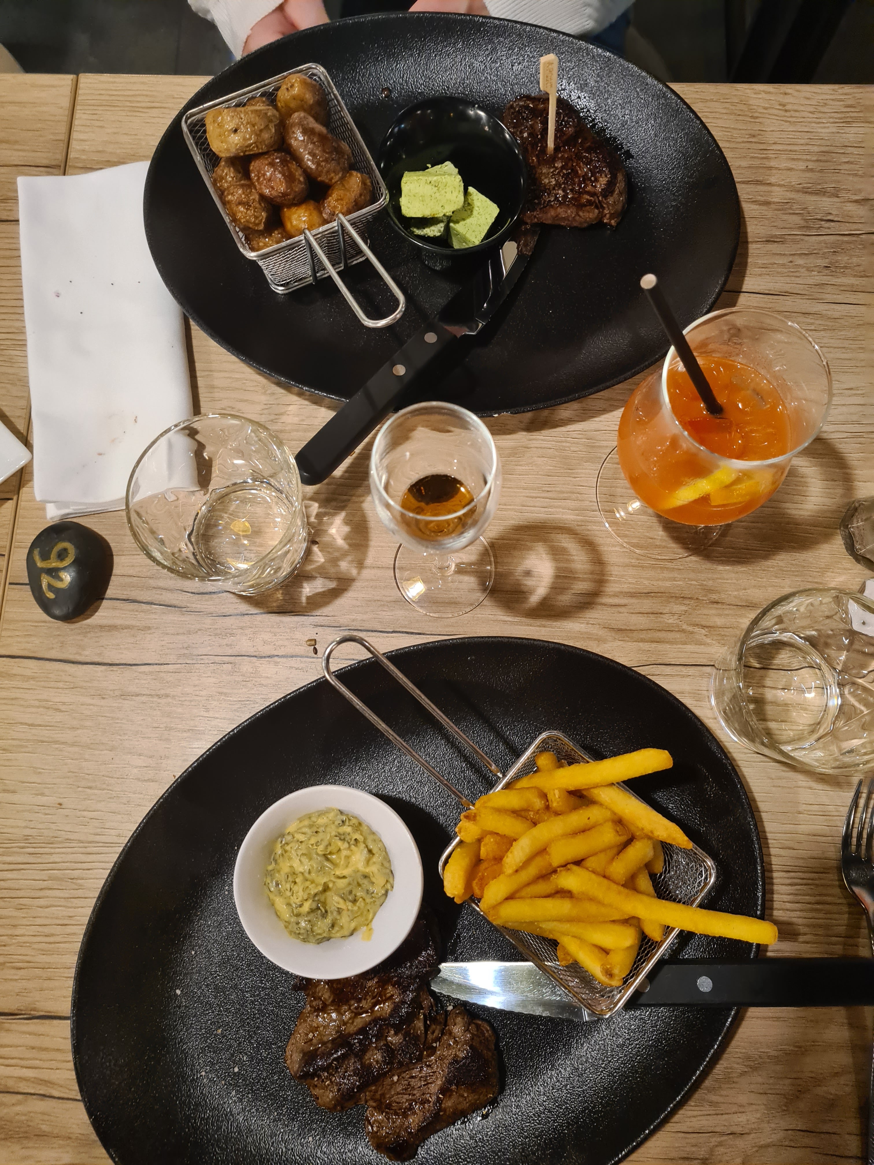 Une dernière table ! Elle est pour nous! Et honnêtement bien contente qu’elle nous attendait. Excellent repas ! Rognon pour moi et escalope de veau pour Monsieur.. une belle étape au départ de notre we!! Je conseille vivement !! (Peut-être mieux vaut réserver..)