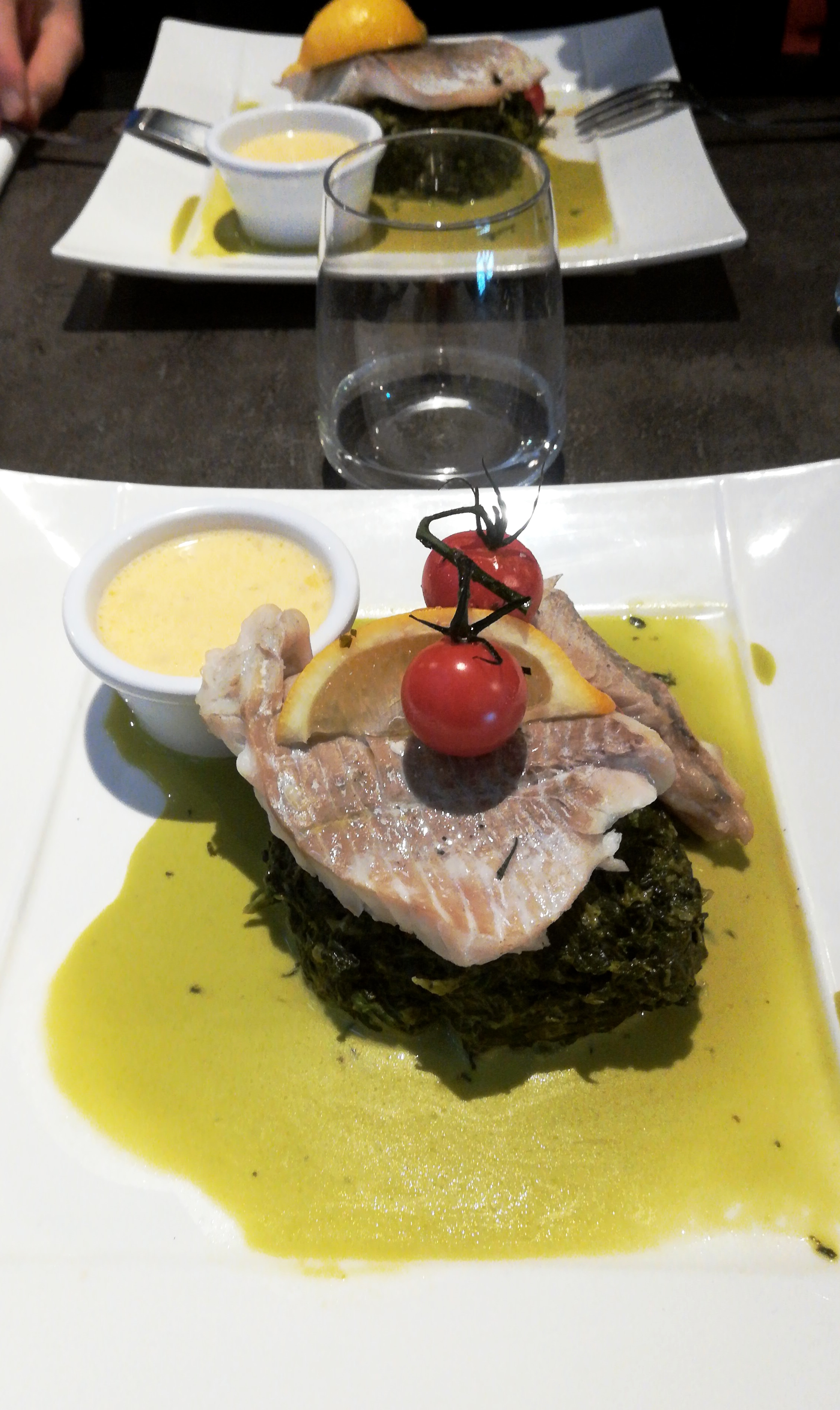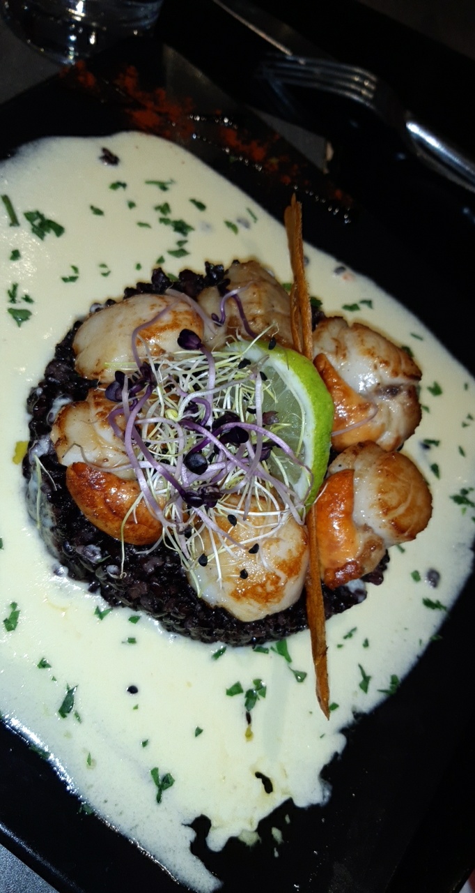 Poisson sûrement décongelé puis cuit à l'eau. Pas fameux, texture élastique. Risotto qui l'accompagne bof aussi (juste des graines de sarrasin avec du gruyère). Pas de la grande cuisine, même si la présentation est bien faite. Personnel par contre sympathique, notamment le patron.