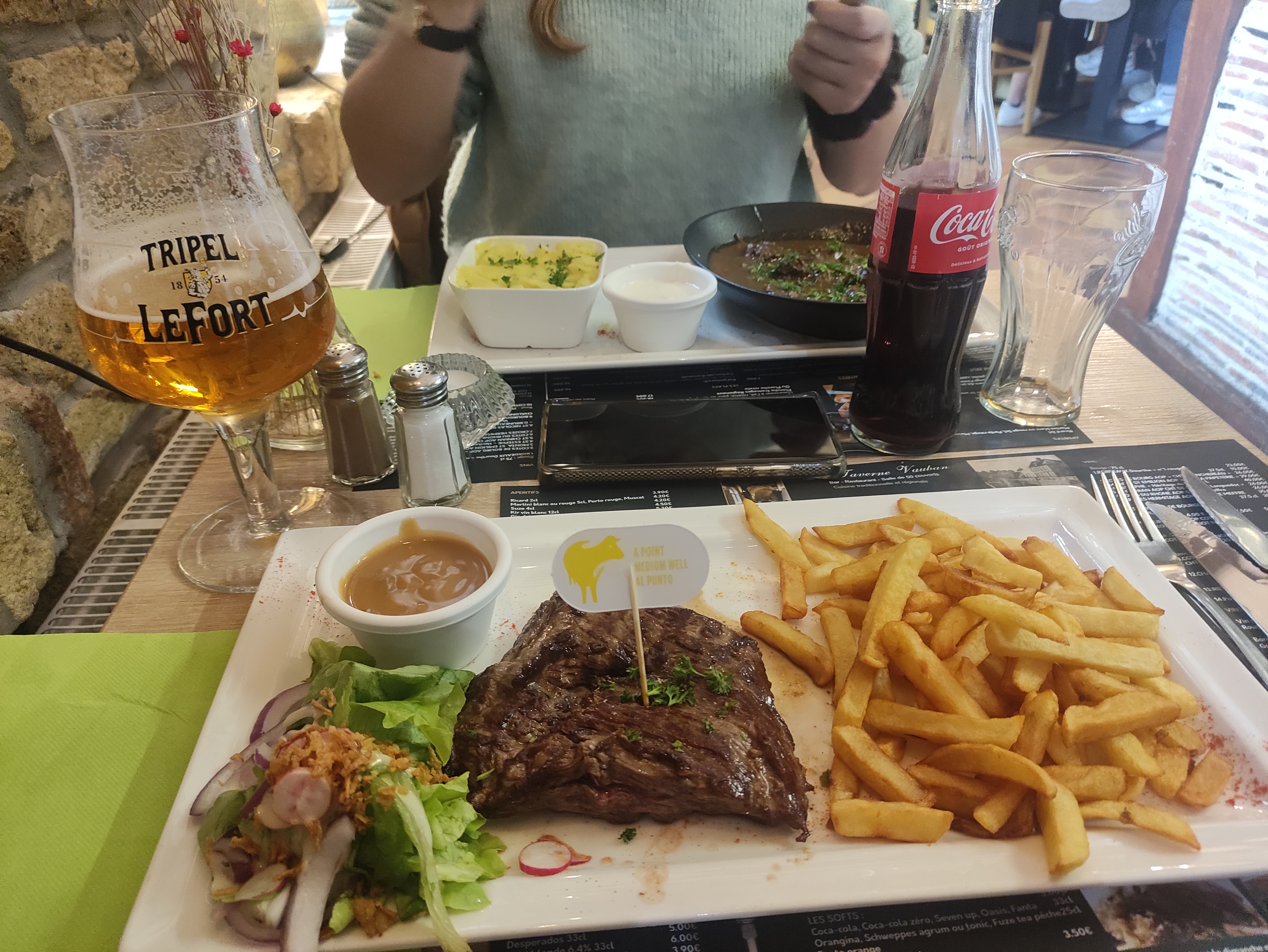 Le plat principal était un délice : carbonnade flamande. Par contre le dessert un désastre bien qu'une spécialité régionale : la gaufre. Elle est arrivée froide sans petite cuillère pour manger la glace. J'ai demandé à la serveuse de la réchauffer : la gauche m'est revenue toujours aussi froide. La serveuse m'a précisé qu'il y avait un problème de four. Or, une gaufre ne se prépare au four comme la crêpe. Cela signifie que c'était du surgelé. Elle était d'ailleurs sans goût. Dommage car tout était bien sauf le dessert. C'est décevant.