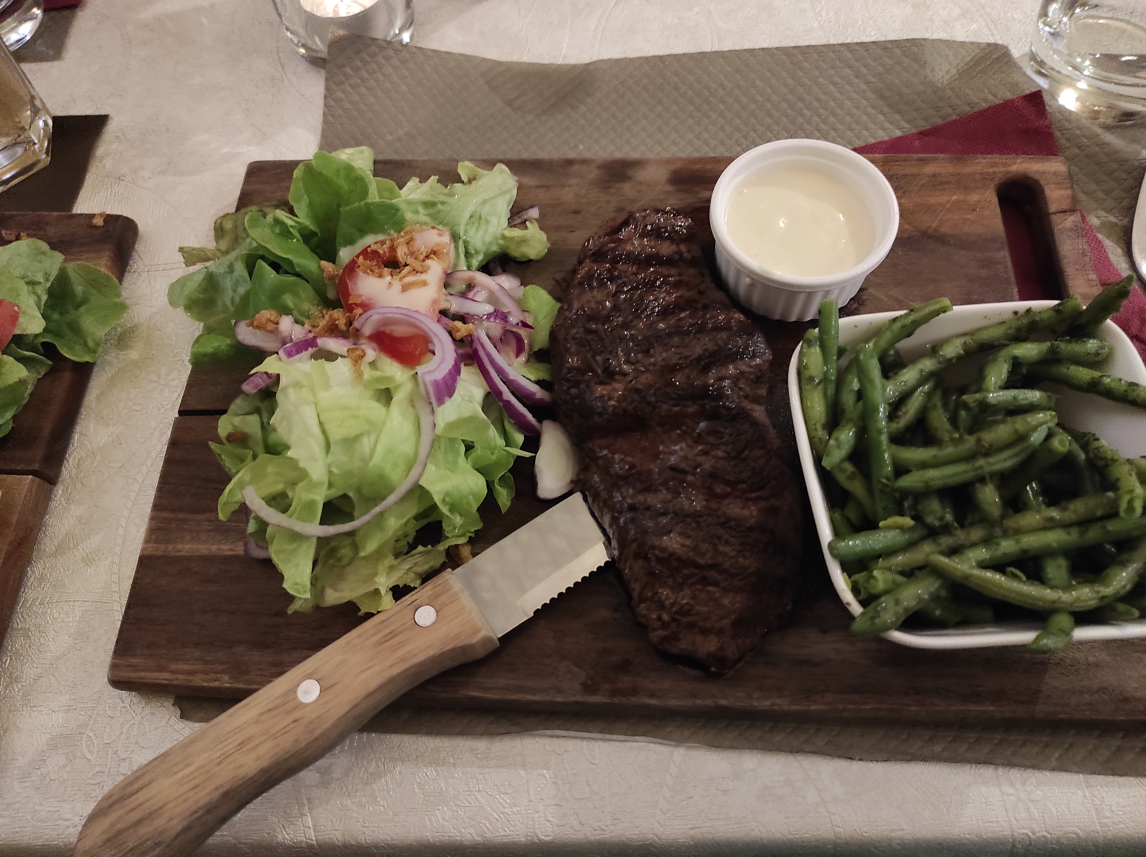 J'ai tenté avec mon ami Benoît la côte de bœuf 500g saignante...une tuerie. Table et service au top, juste bruyant avec de grandes tablées heureuse de se retrouver, inconvénient mineur au regard de l'ensemble.