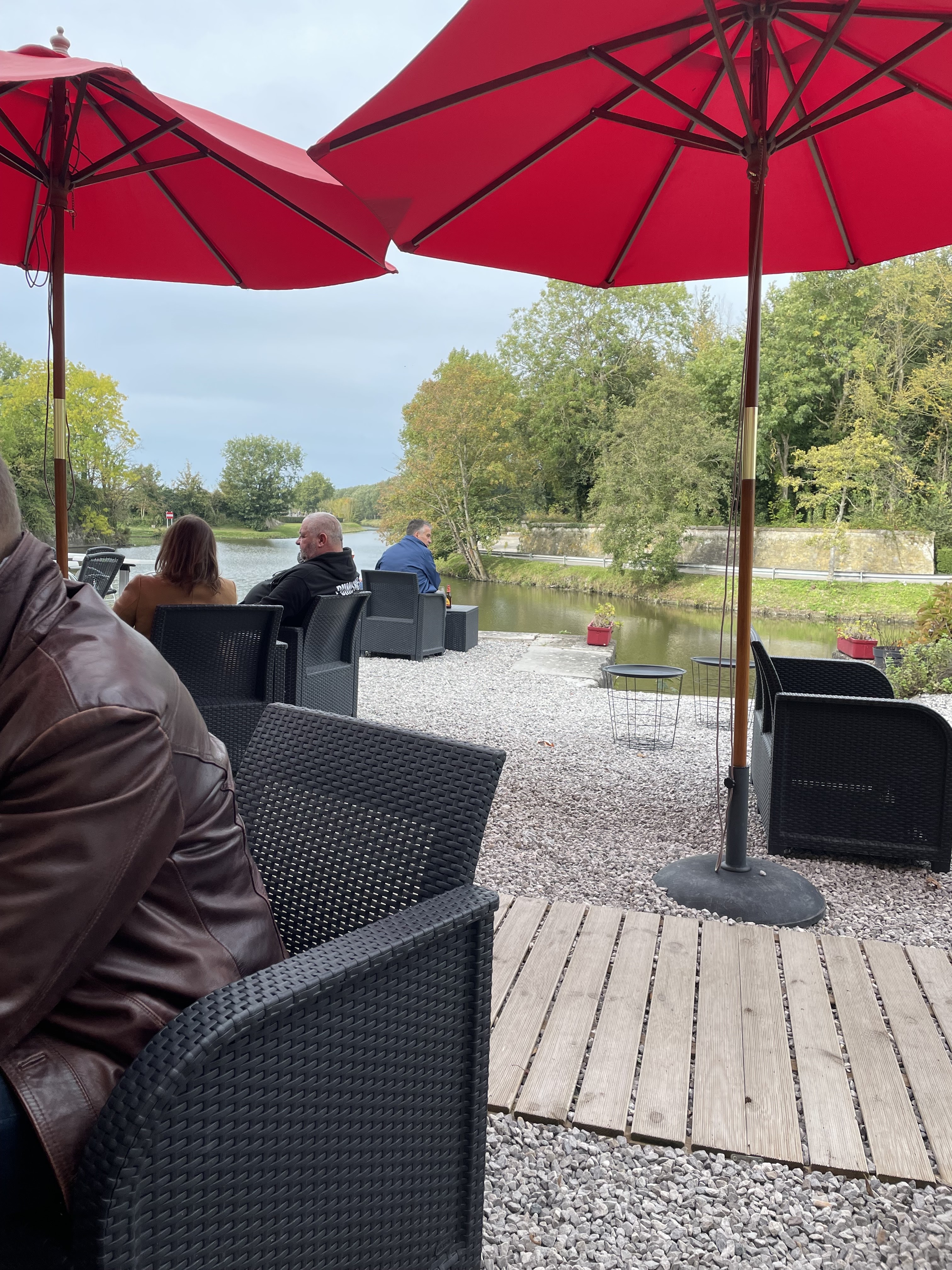 C'est un endroit splendide. La nourriture est de bonne qualité et savoureuse. Serveurs sympas. La plupart du temps uniquement francophone, mais nous en avons eu un qui nous comprenait. Menus uniquement en franch également, mais ce n'est pas un problème. Nombreux parkings aux alentours. L'endroit est situé près du canal d'eau. Vous pouvez vous asseoir à l'extérieur ou à l'intérieur. Les deux sont sympas.
