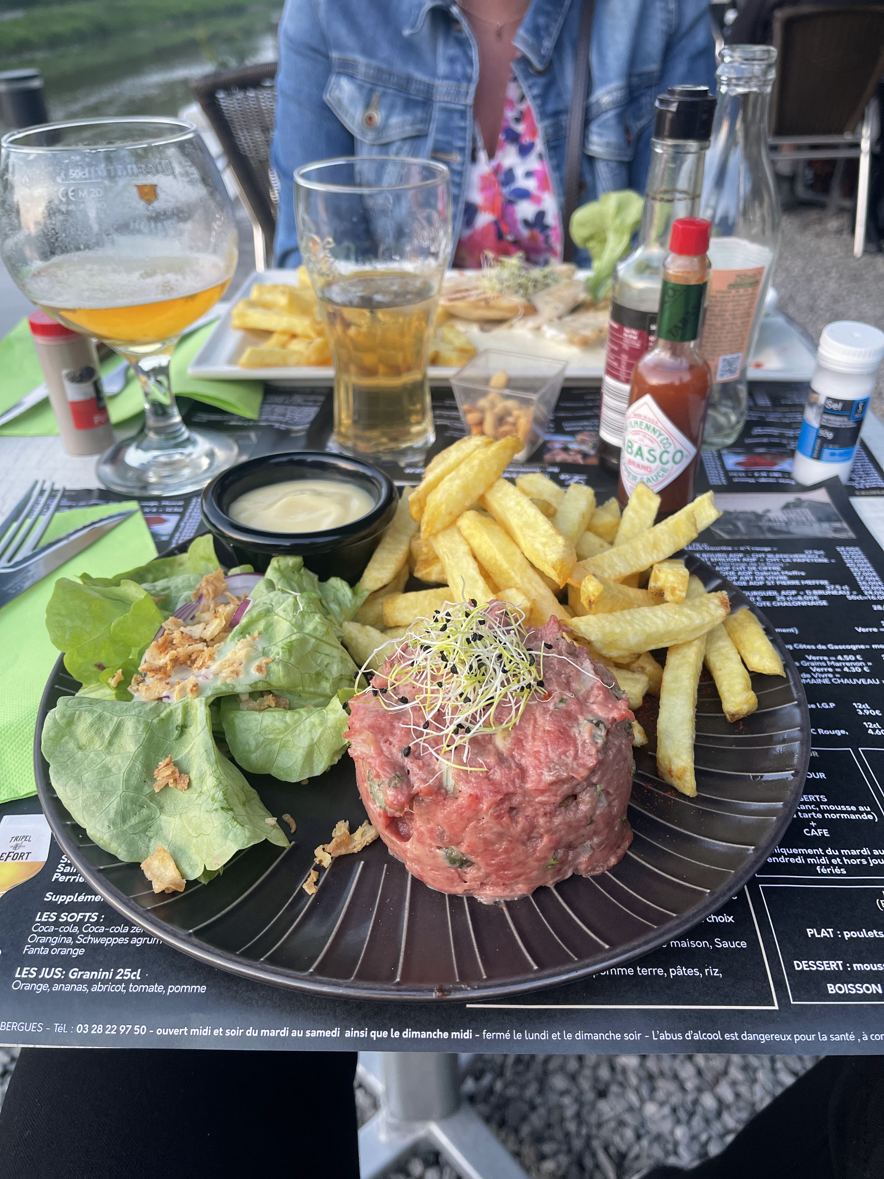 Très beau cadre et super terrasse donnant sur le port de Bergues, équipe dynamique et sympa, bons plats.