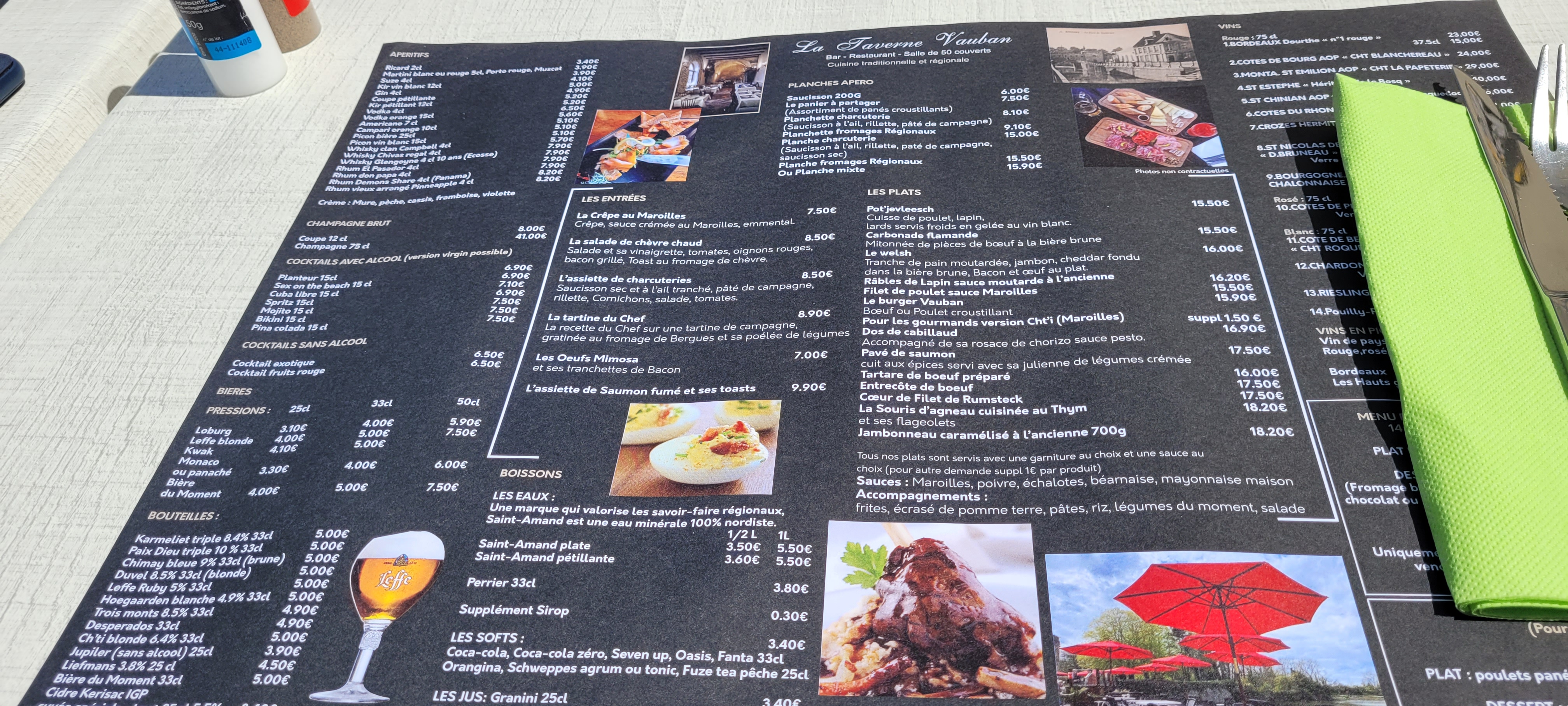 Accueil convivial. Une taverne rénové avec goût et une terrasse agréable qui donne vue sur le canal. Les hamburgers Vauban sont copieux. Les prix sont plus que correct. Menu à moins de 14 euros.