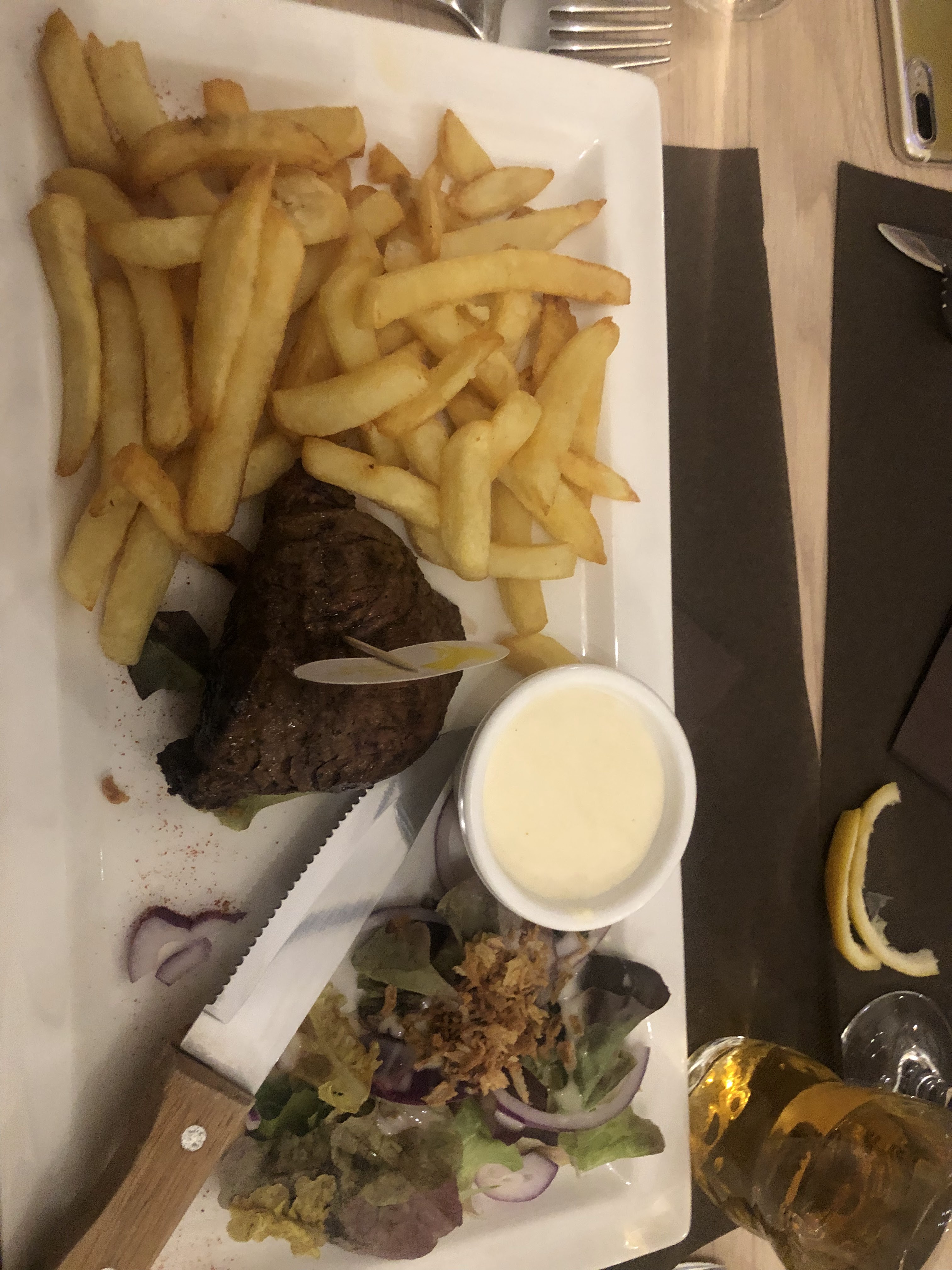 Restaurant à la décoration et au charme atypiques. Le personnel est sympathique. La localisation est top, le cadre est unique. La cuisine est bonne, les frites sont pas mal, néanmoins problème avec la cuisson des viandes, commandées à point et servies bleues. Mise à part ça, je recommande ce restaurant.
