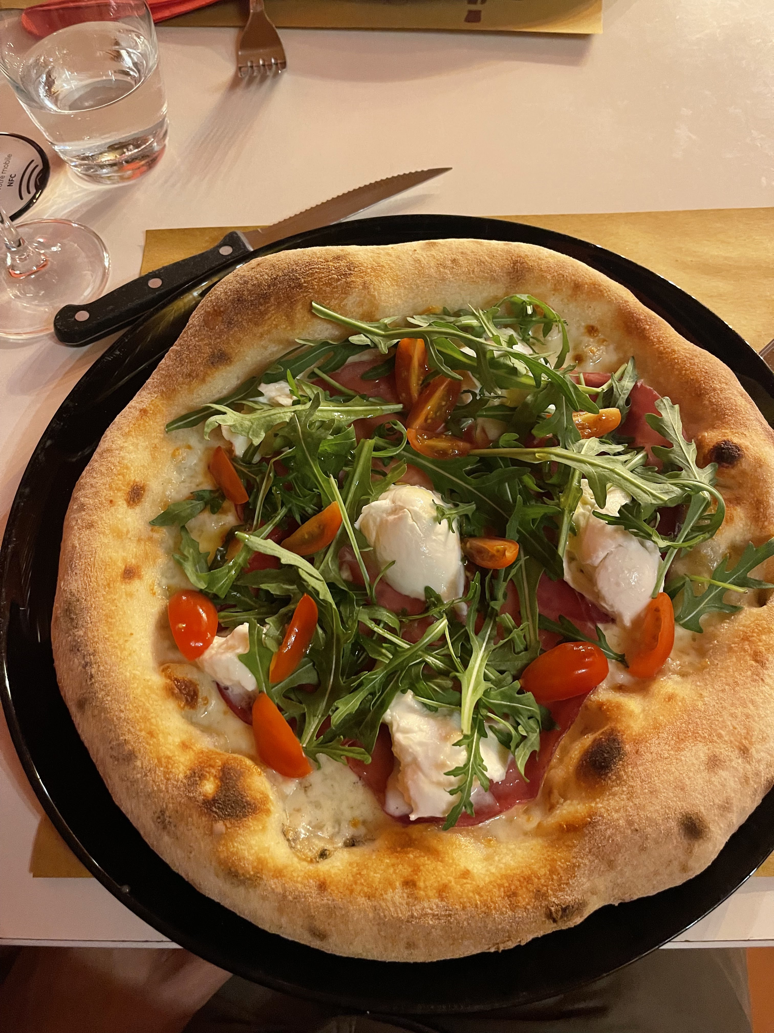 Très content d'avoir poussé la porte de ce restaurant après un arrêt dans un trip moto. Après avoir commandé une pizza deliciosa auprès de ce couple italien. Quelle merveille, une pizza délicieuse et gourmande, une pâte moelleuse et croustillante cuite a point, une composition gourmande de tomates, tomates cerises, burrata et de jambons fumé, je dois en oublier. Un moment de dégustation où j'ai pu partir de l'autre côté des Alpes avec l'accueil et cette préparation. A recommander comme adresse.