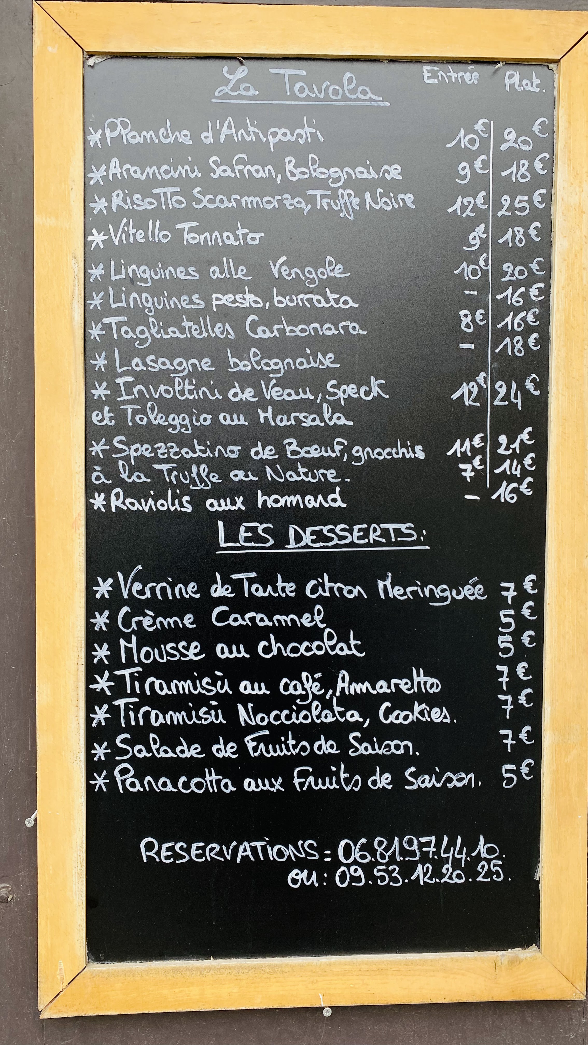 La Tavola est un restaurant charmant et nous y avons très bien mangé. En effet, les lasagne et l'escalope étaient très bonnes. Cependant, arrivés à 20h nous avons attendu plus de 30 minutes avant que l'on nous donne la carte. Lorsque nous l'avons demandé on nous dit que l'ardoise est occupée dans la grande salle et nous avons du attendre encore 10 minutes avant que l'on nous installe une ardoise pour deux tables ce qui nous permettait pas de bien voir le menu. Un autre serveur est donc venu nous déposer une carte avec un QR code que l'on aurait pu avoir dès le début. Nous avons ensuite attendu avant qu'on prenne notre commande. Les plats sont ensuite arrivés très vite mais nous n'avions pas les couverts. Beaucoup de personnes semblaient insatisfaites dans le restaurant au moment de payer. C'est vraiment dommage car la cuisine est bonne, le lieu est sympa et les serveurs sont agréables mais il faut revoir le service.