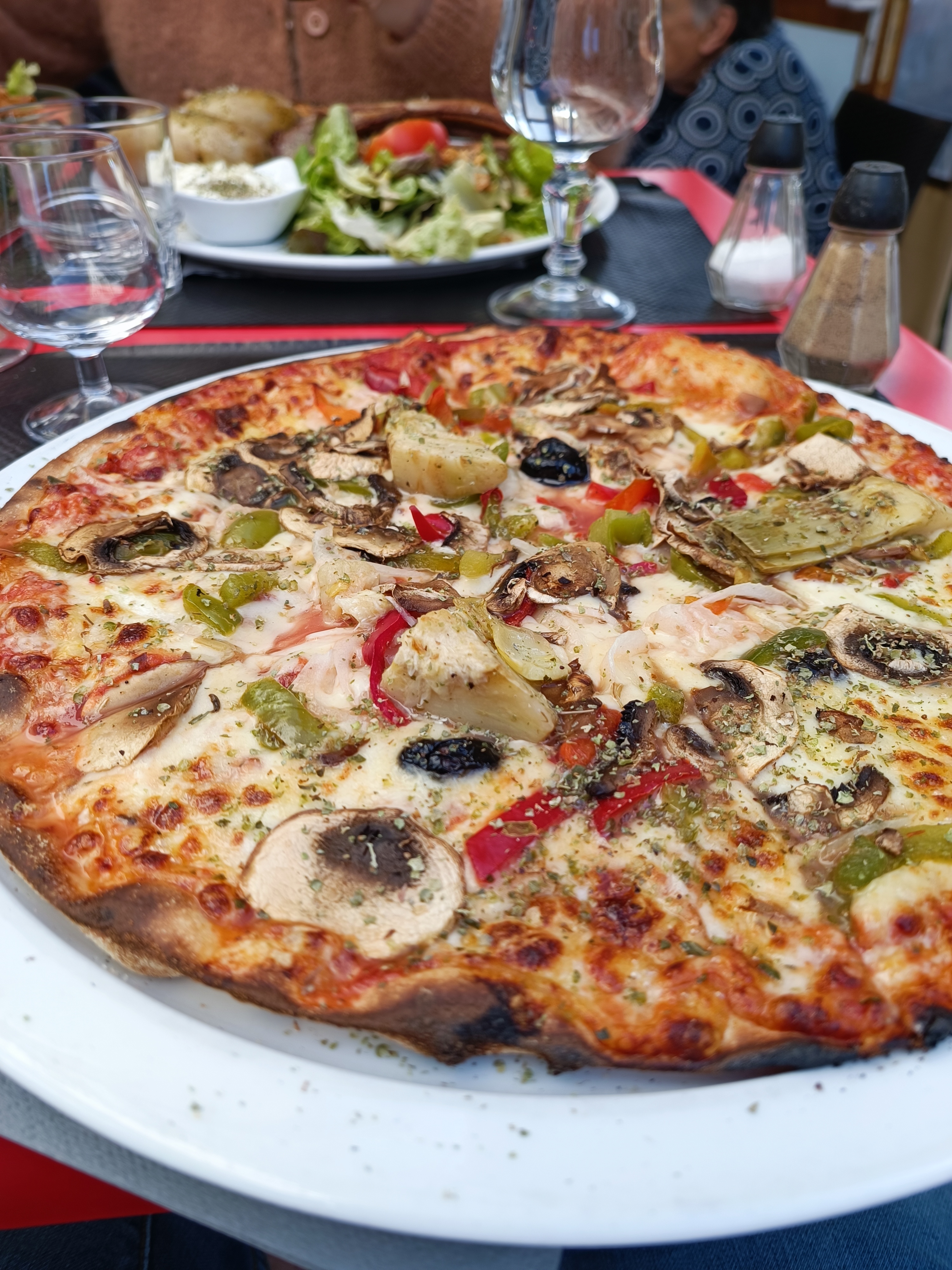 Nous avons bien mangé (pizza et salade pour ma compagne qui était d'ailleurs bien fournie). Restaurant à essayer.