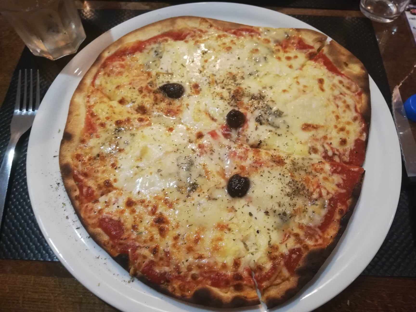 Franchement pas mal pour le prix : assez copieux, service rapide, bon les bords de pizzas étaient plutôt carbonisés mais l'ensemble est très acceptable. Personne n'est ressorti avec la faim alors que nous étions arrivés avec 😁. L'équipe est agréable. Donc je conseille.