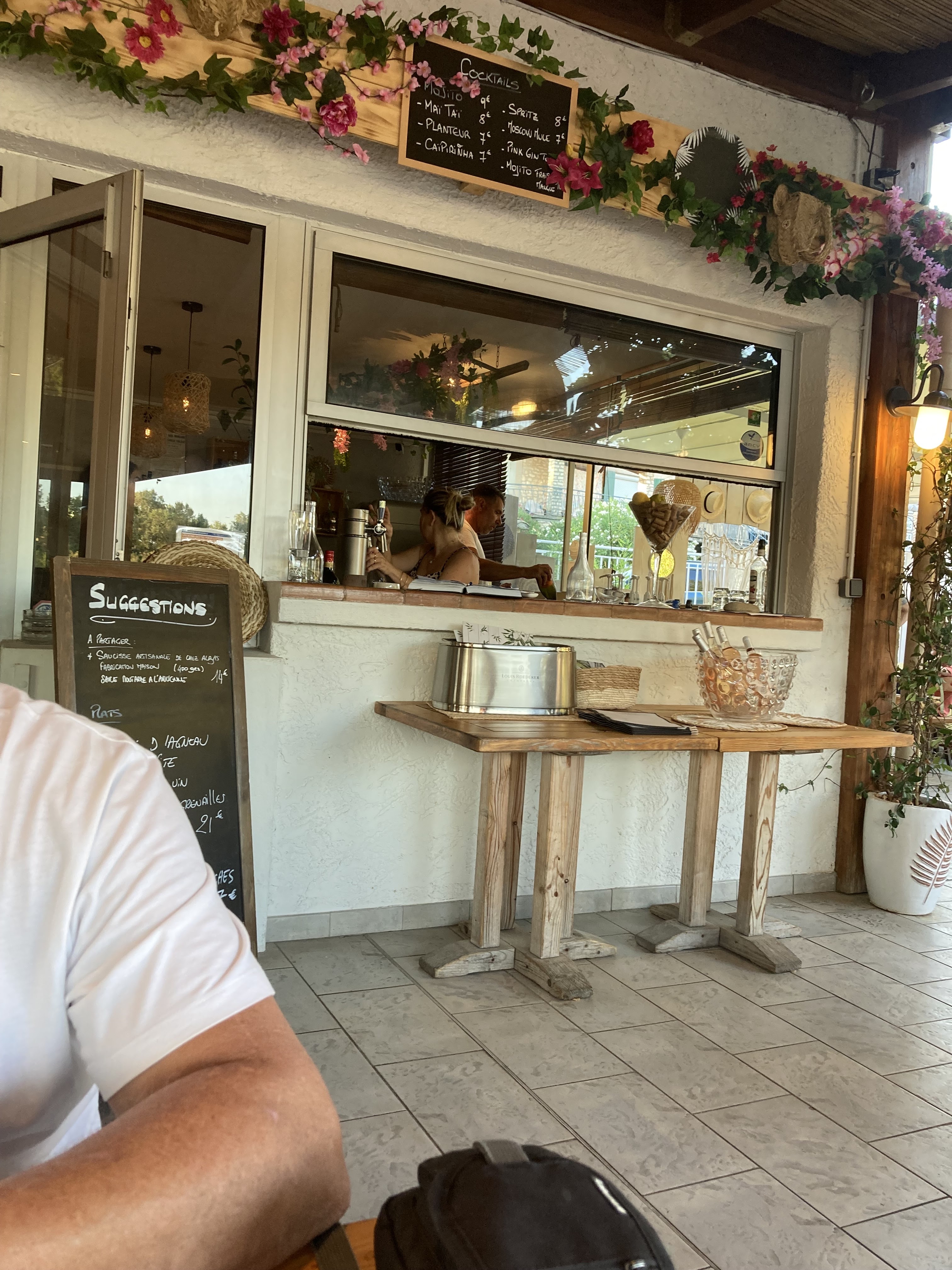 Nous avons réservé pour 10 le mercredi 4 août 2021 au soir. Moi et mes amis avons décidé de commander 4 planches afin de se les partager (planche charcuterie, planche fromage, planche légumes, planche frito misto) le prix était entre 12€ et 14€ la planche et la quantité était vraiment moindre (par exemple pour le fromage il y avait 3 variée différentes de fromages et 3 parts de chaque, pareil pour la charcuterie). De plus le rapport qualité prix est différent selon les plats. Pour finir 2-3 des serveurs appréciable. Mais bon mojito (9€ le mojito mangue !)