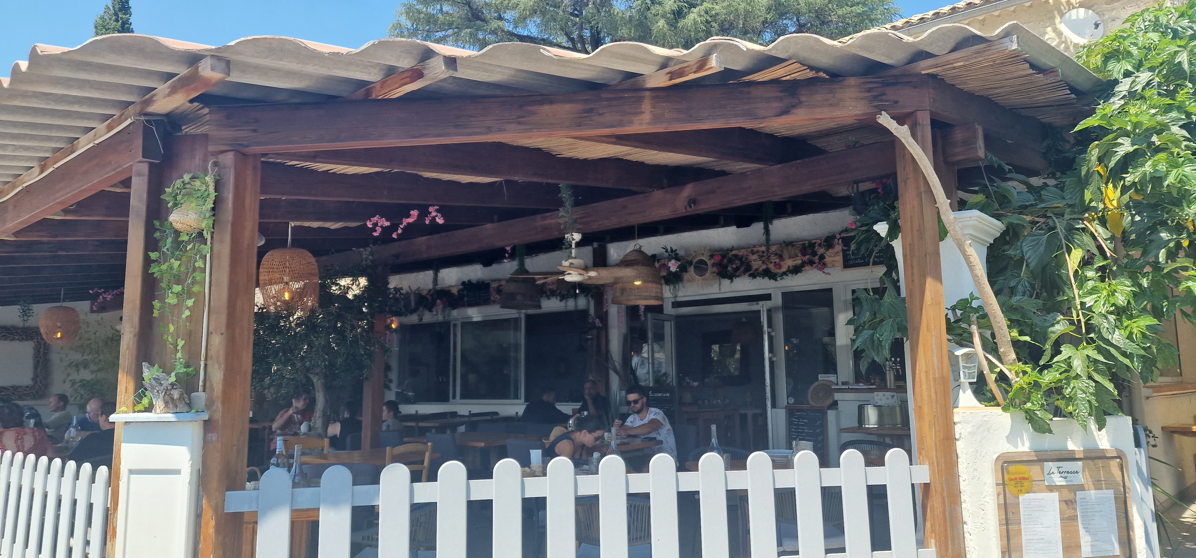 Une belle pause déjeuner sur une belle terrasse décorée avec goût avec la vue sur l'Ardèche avec une bonne cuisine.