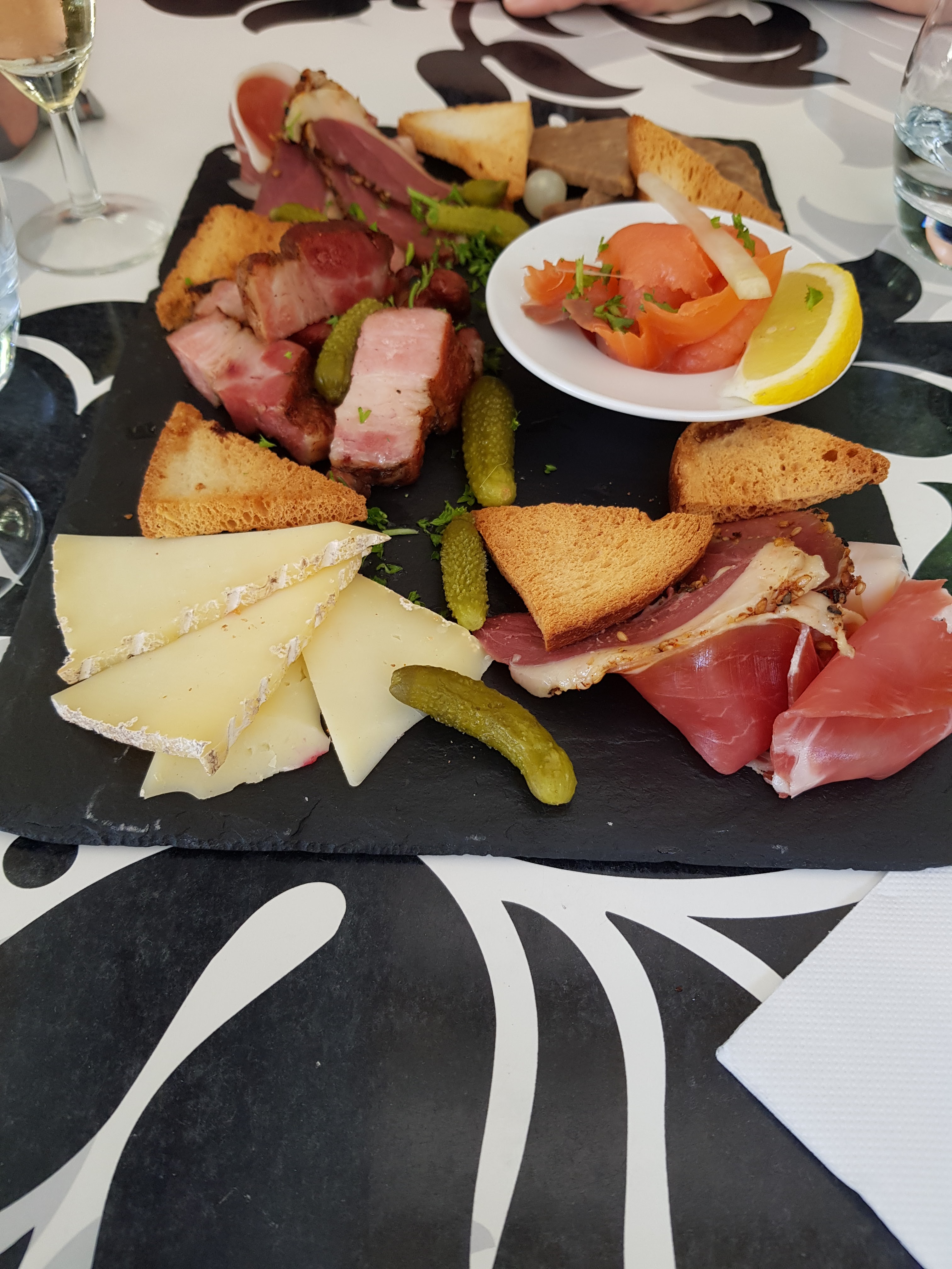 Accueil plein de bonne humeur comme tous les membres du service , un brumisateur qui rend le lieu idyllique en cette période caniculaire , une cuisine délicieuse et tout fait maison. On a fini avec un café gourmand tellement gourmand ! Bravo ! Mon épouse et moi même vous remercie pour cette belle soirée !