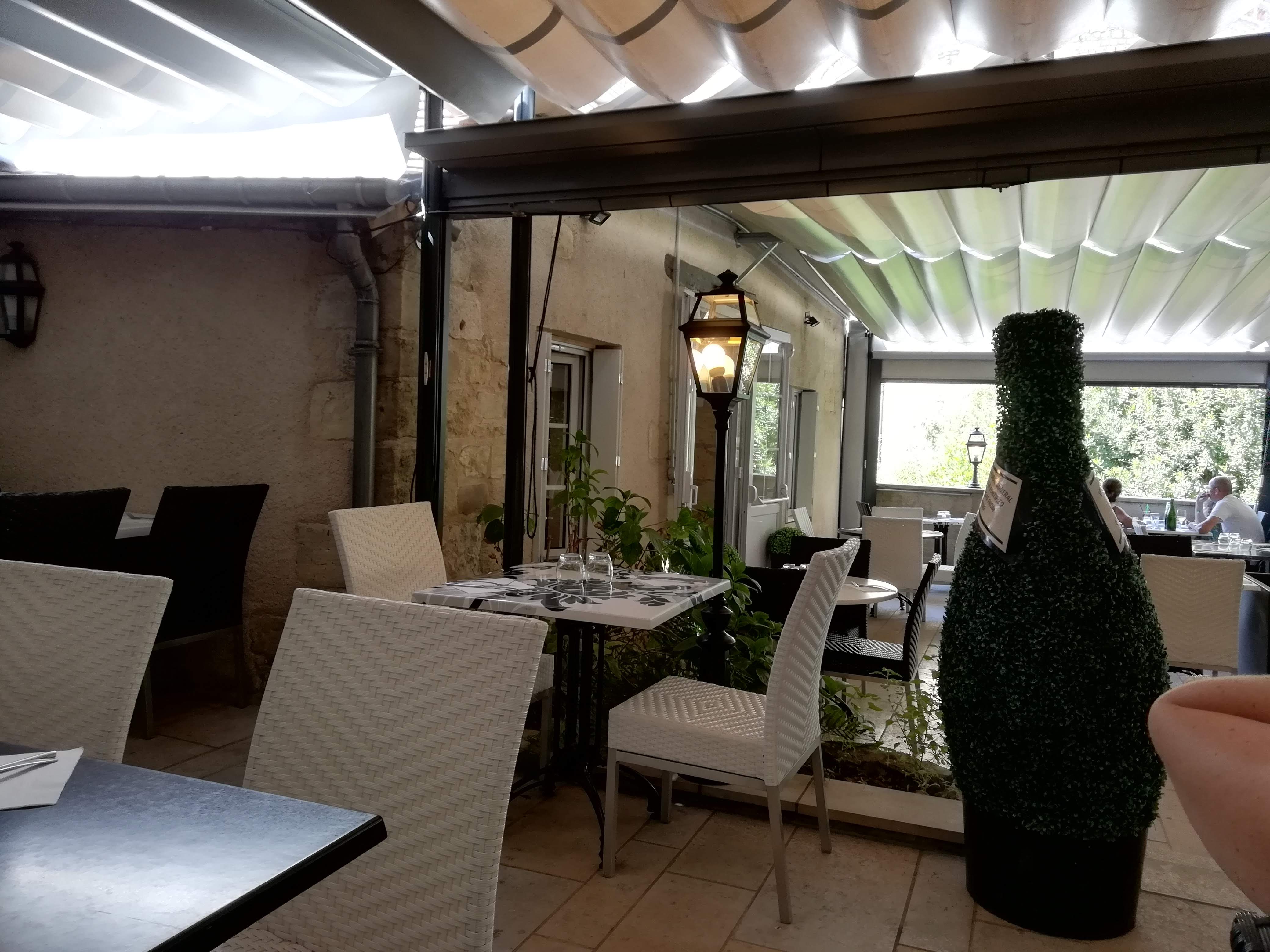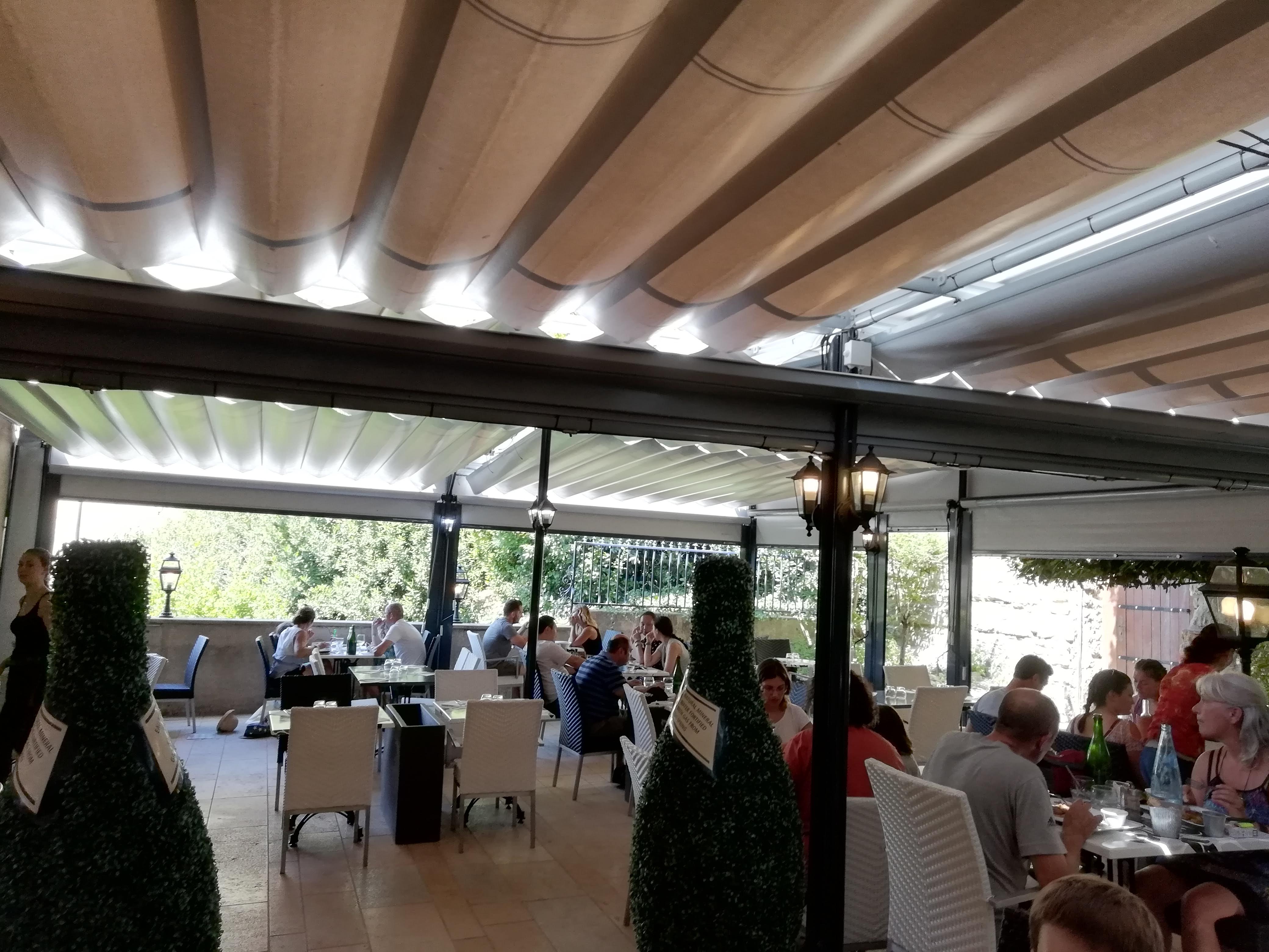 Un restaurant de grande qualité. La terrasse au pied des remparts est fraîche avec le toit roulant .les invités ont de l'espace. Les mets sont succulents ,savoureux et apportés avec convivialité et bonne humeur. Fortement à recommander, il vaut mieux réserver.