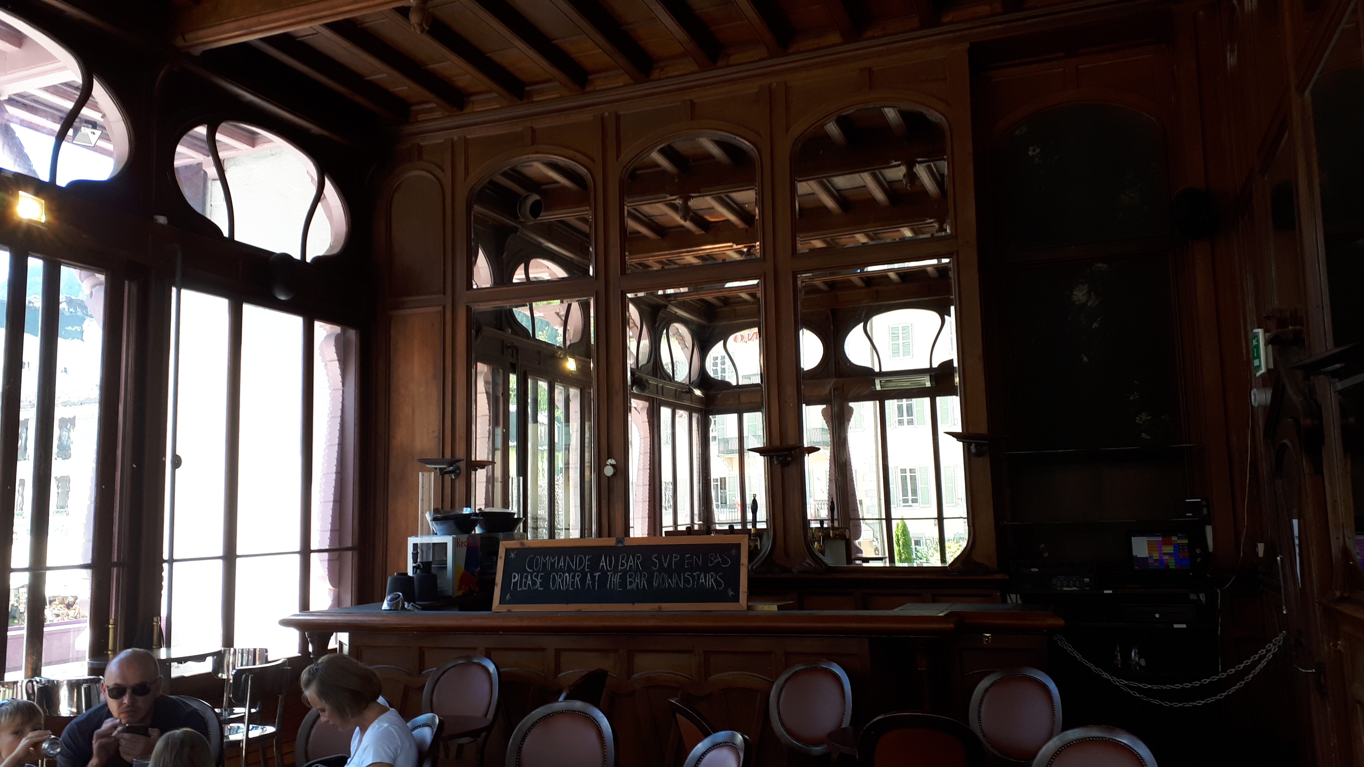Joli intérieur du début du 20 ème siècle à l'étage avec vue imprenable sur le mont blanc. Très cosmopolite et le personnel ne parle que l'anglais. Beaucoup de charme
