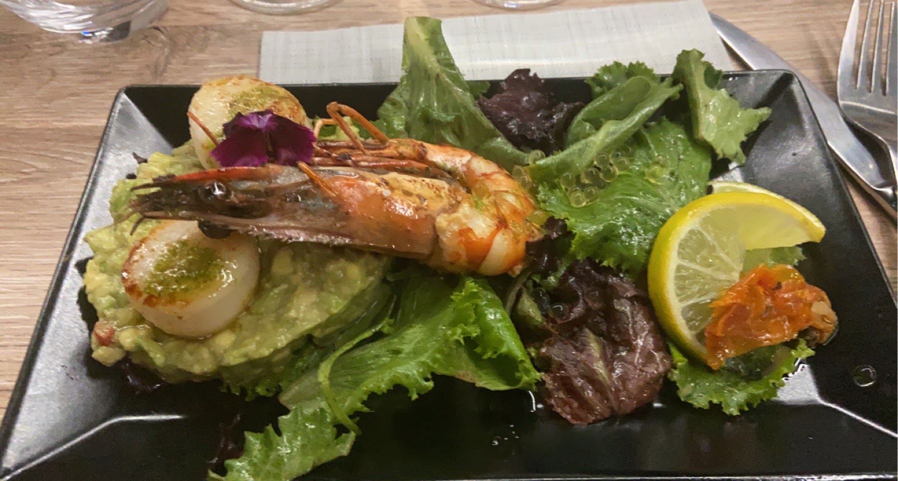 Vraiment très bon, rassasiant, très belle vue et service agréable et efficace. Quelques options végétariennes (ovo-lacto) appréciables pour un restaurant plutôt poisson. Parfait pour une grande occasion ou se faire plaisir.