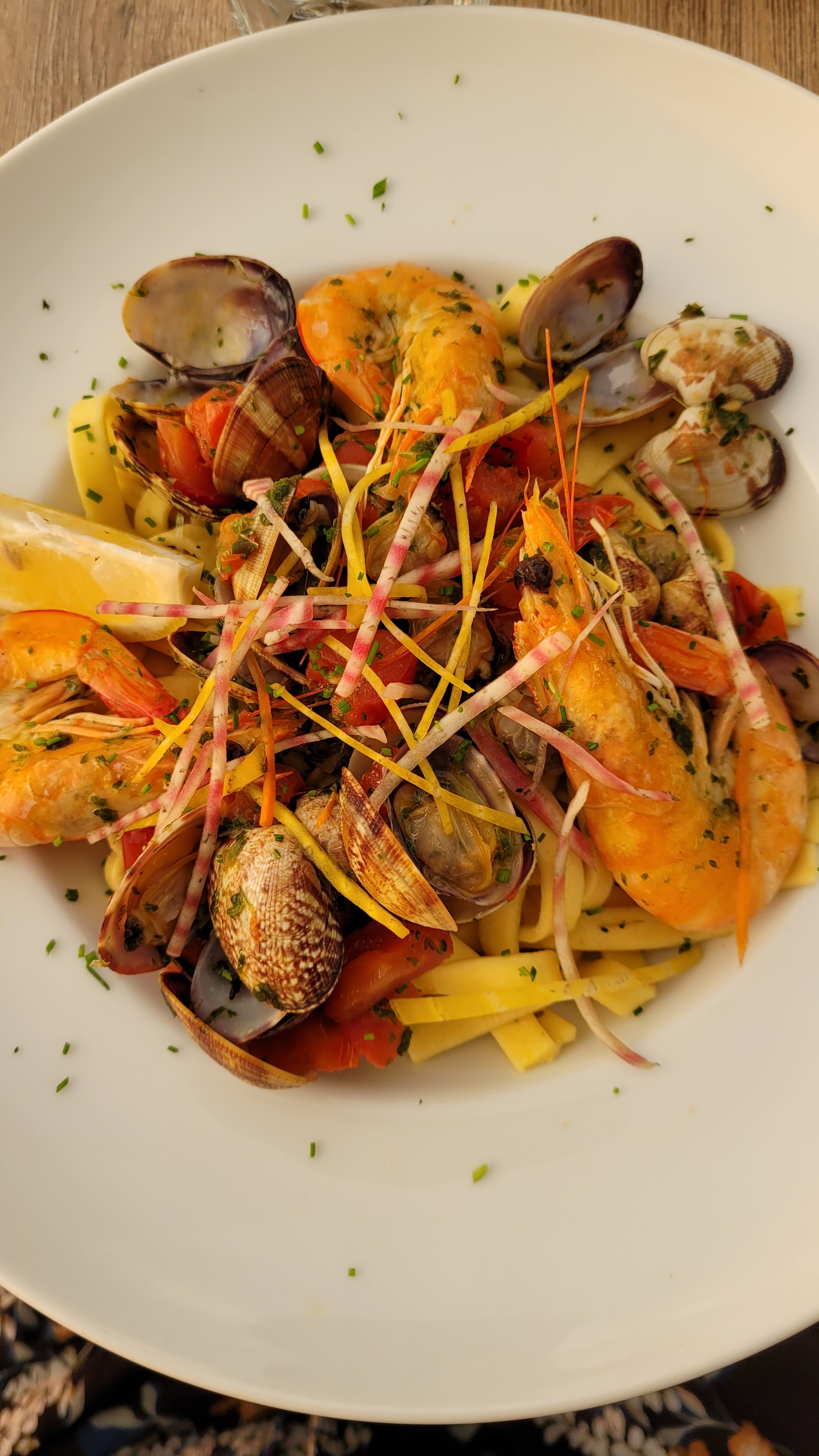 Agréable restaurant. Les serveurs et serveuses sont réactifs. La cuisine est bonne (foie gras poêlé, tagliatelles aux palourdes et aux crevettes, tiramisu au limocello). La vue de la terrasse au coucher de soleil est magnifique.