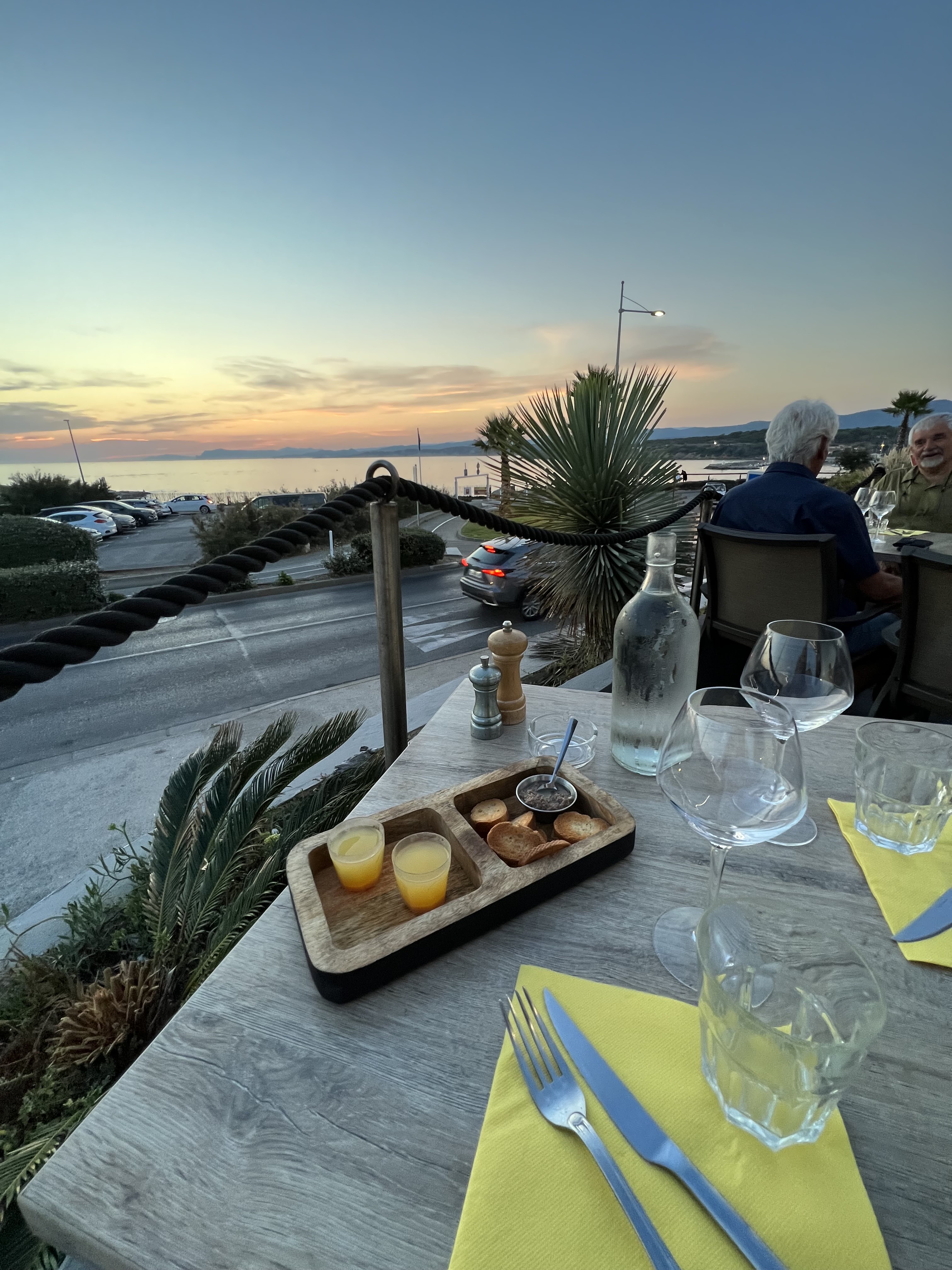 Petite attention à l arrivée : anchoiade et petit verre de rhum. D'entrée on se sent bien. Les serveurs très pro, accueillants, agréables, la cuisine succulente. Un délice du début à la fin. Ce resto restera gravé dans ma mémoire de fin gourmet et dès que je reviendrai dans la région je serai dans l obligation de revenir dans cet établissement. De plus vue sur la mer et soleil couchant...merci à vous pour ce moment de pur bonheur. Pensez a réserver car sinon vous finirez comme nous le premier jour au kebab cracra un peu plus loin qui pour le coup fût une expérience à la limite du traumatisme irréversible !