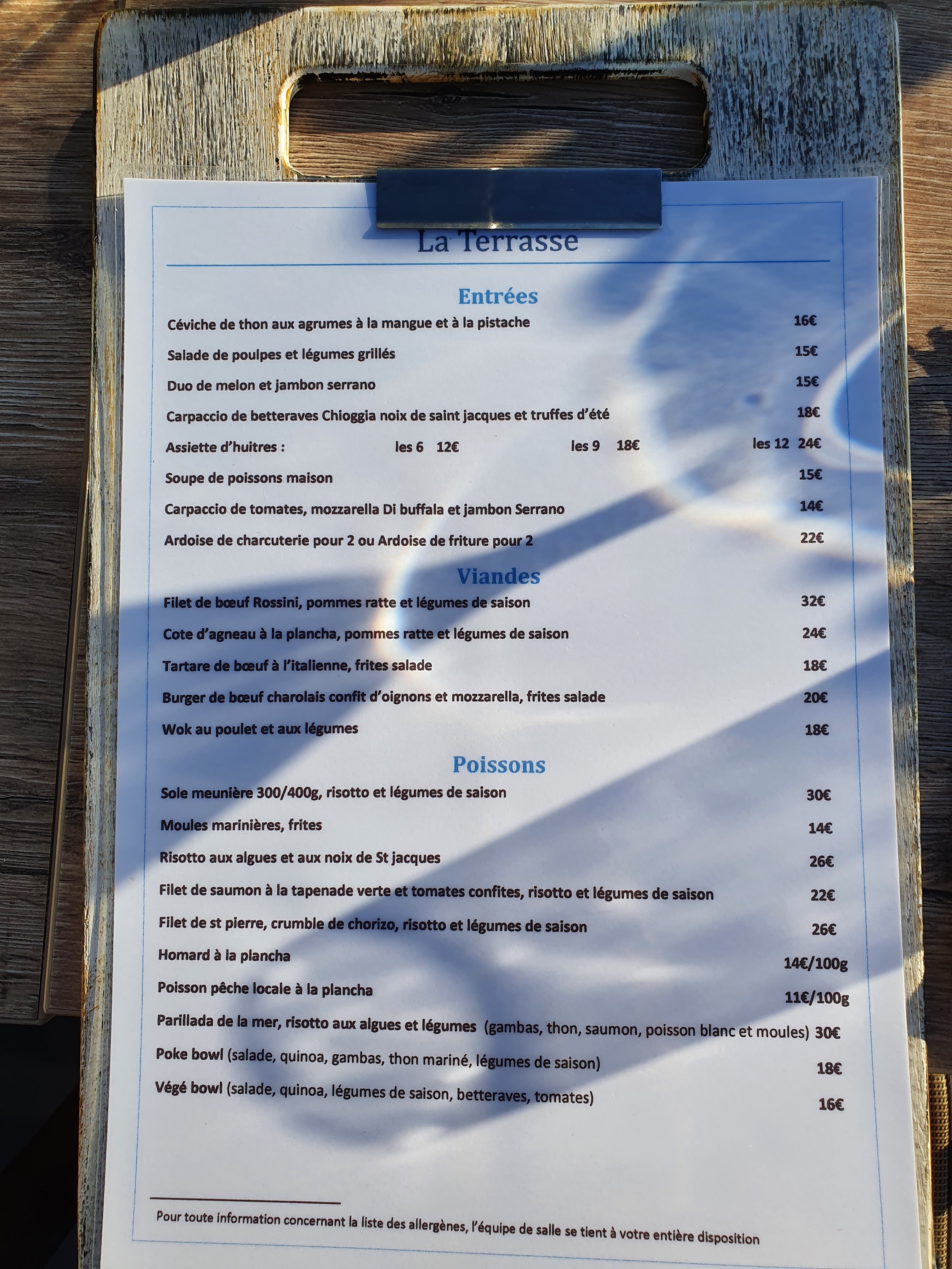 Produits frais et plats succulents. Service au top toute l'équipe à votre écoute. Très bon restaurant avec vue mer. je recommande vivement. A ne pas rater si vous êtes dans le coin.