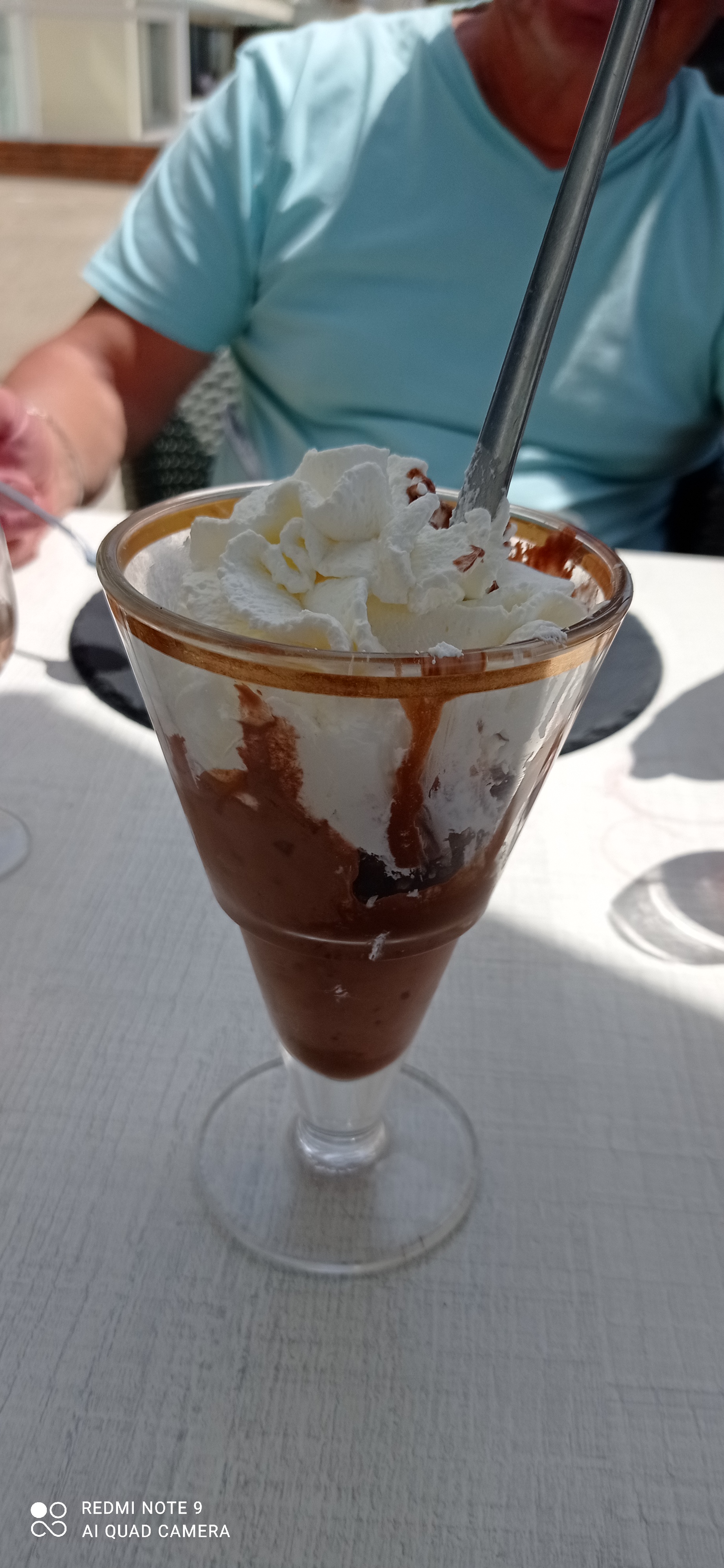 Entrée servie avant l'aperitif et avec un ingrédient manquant Coktail sans glaçon Morito avec feuille + BRANCHE de menthe dans la verre, manquais plus que les racines ! Moules aux curry... Je cherche toujours le curry... On a préféré prendre le dessert dans la rue piétonne !