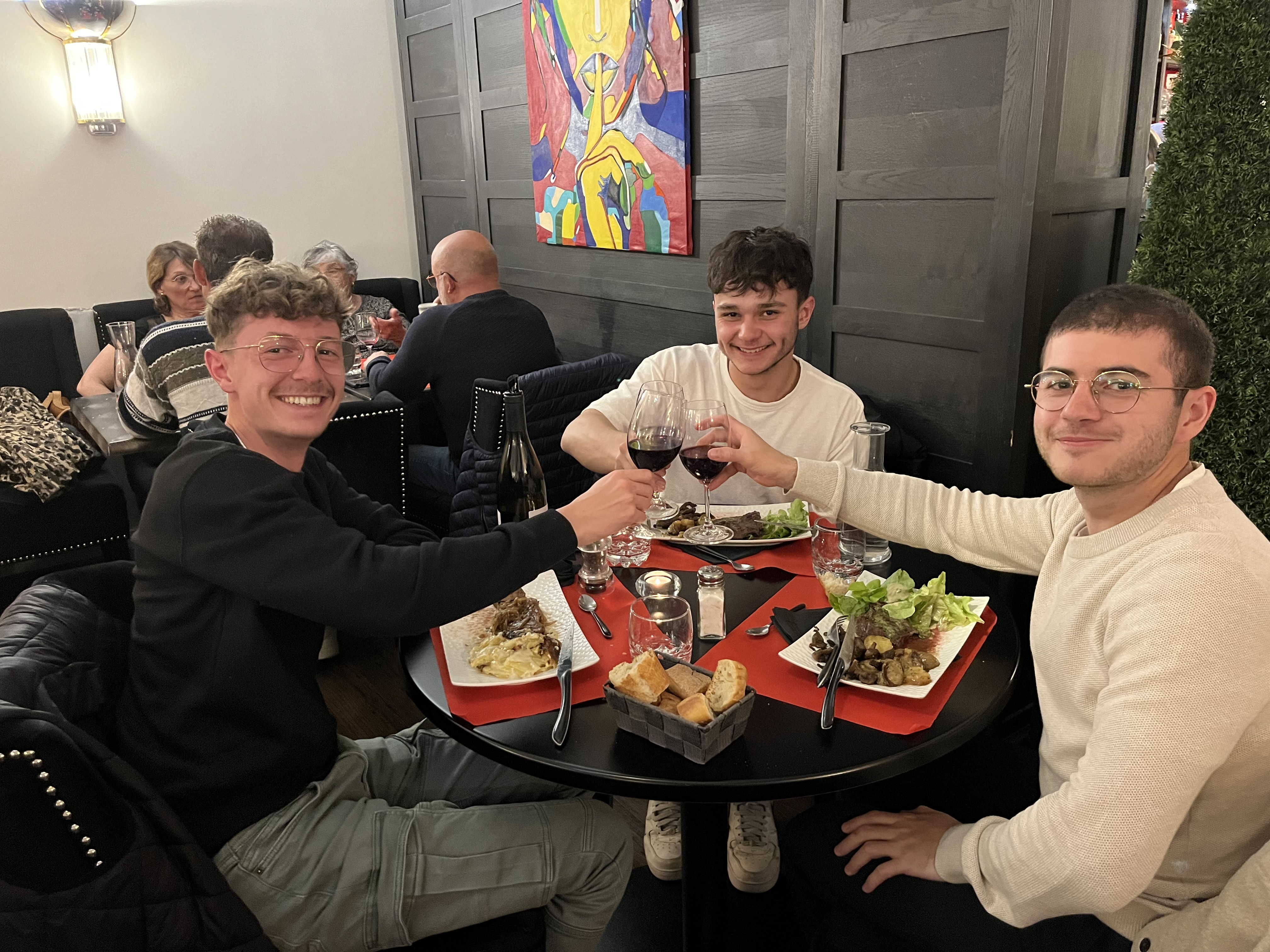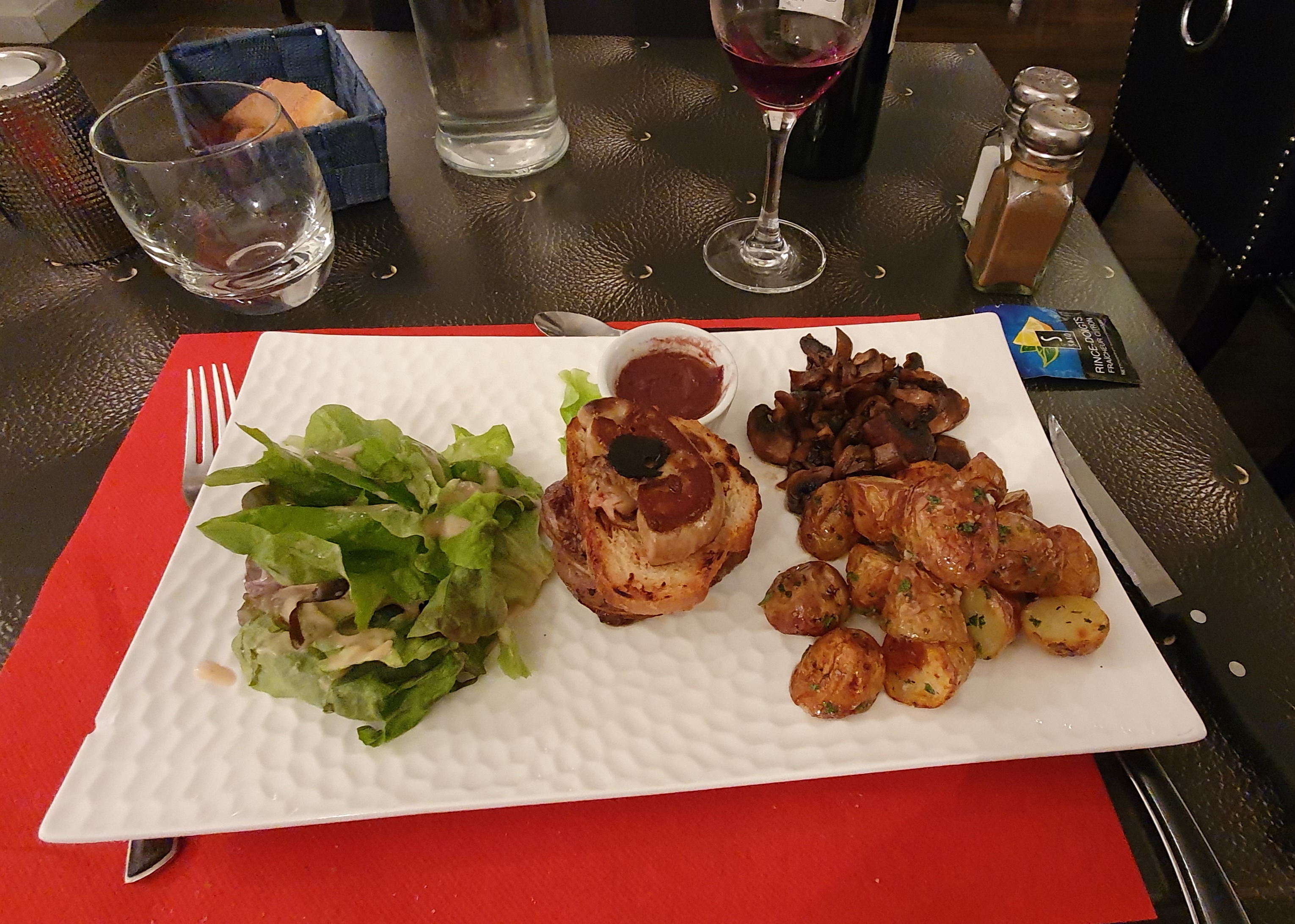J'ai eu l'entrecôte avec des pommes de terre et du Merlot ... très bon Bonne ambiance