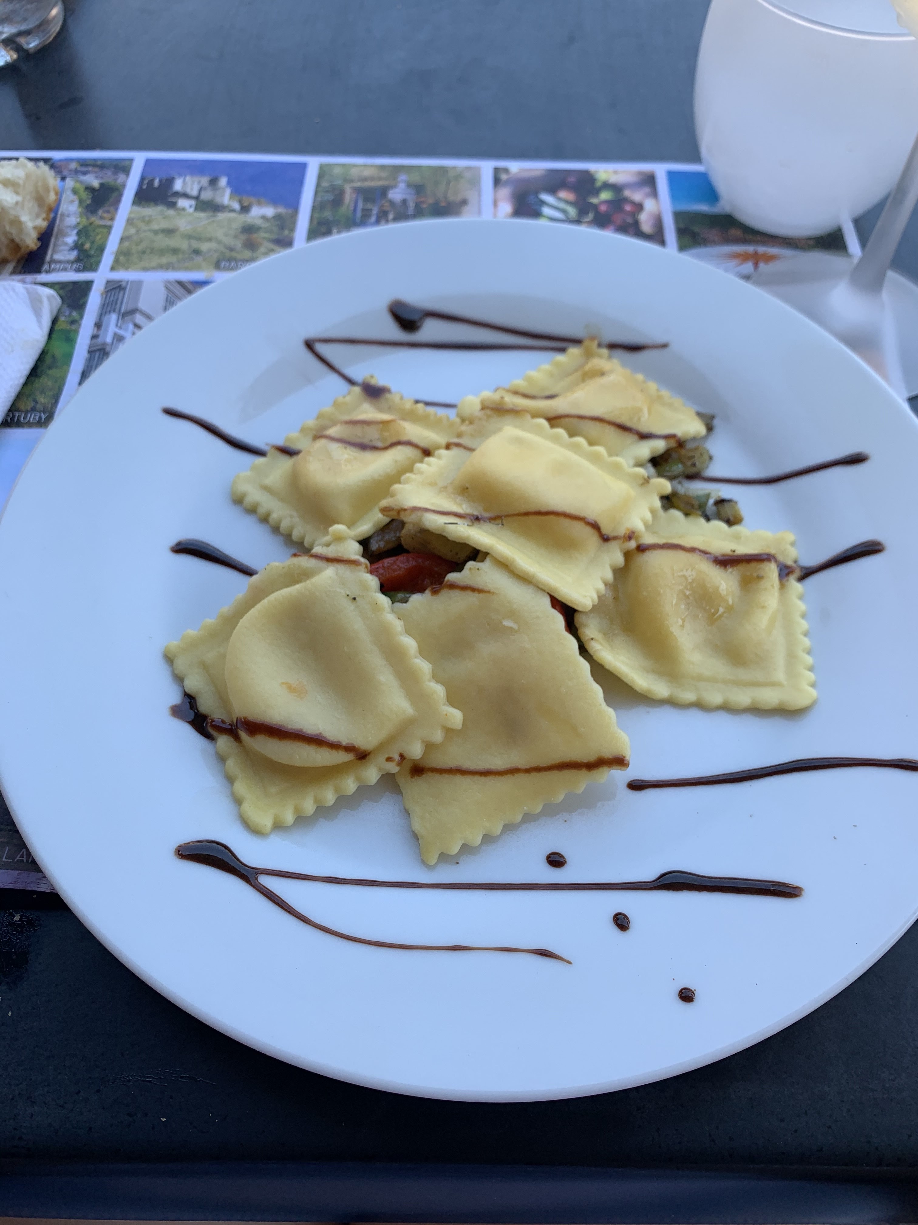 Excellent déjeuner dans ce restaurant. Nous nous sommes arrêtés ici avec notre visite des vignobles pour le déjeuner dans l'après-midi. J'ai eu le spécial et ma femme a pris les raviolis aux truffes. Les autres membres du groupe ont mangé des raviolis et tout le monde a également apprécié. La spéciale était une version fantastique du poulet cacciatore. C'était très raisonnable à seulement 13 euros. Les boissons étaient également raisonnables, le vin ne coûtant que 3 euros. J'y retournerais certainement si nous revenons un jour dans cette région. Merci pour la bonne nourriture!