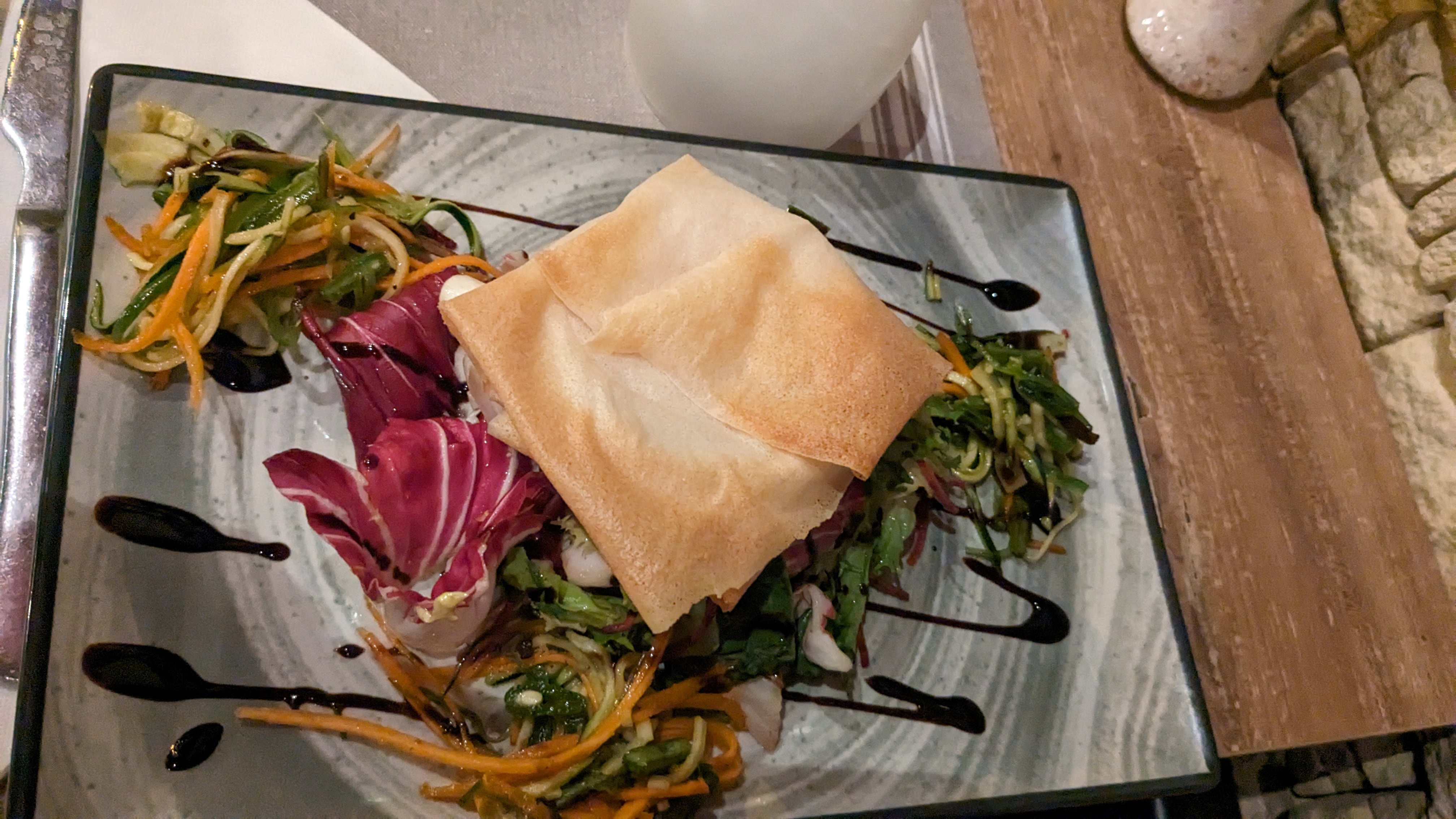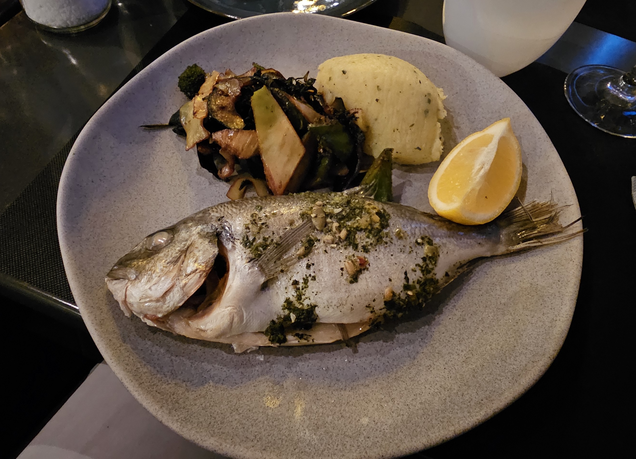 Le démarreur était ok. Deux des quatre plats du menu n'étaient pas satisfaisants. Le plat de crevettes contenait 5 crevettes et le reste était une assiette pleine de pâtes et de sauce sautée. très salé et ne semblait pas frais. Tout petit morceau de viande mesurant 3 sur 3 cm, comestible, le reste des os et du gras. Lorsque nous l'avons signalé, nous avons reçu une boisson chimique à la framboise en guise d'excuses de la part du chef. Bref pas professionnel et aucun rapport qualité/prix !! La terrasse avait encore été démolie pour réparer les égouts. Conseil : manger de l'autre côté de la rue à la pizzeria....beaucoup mieux.