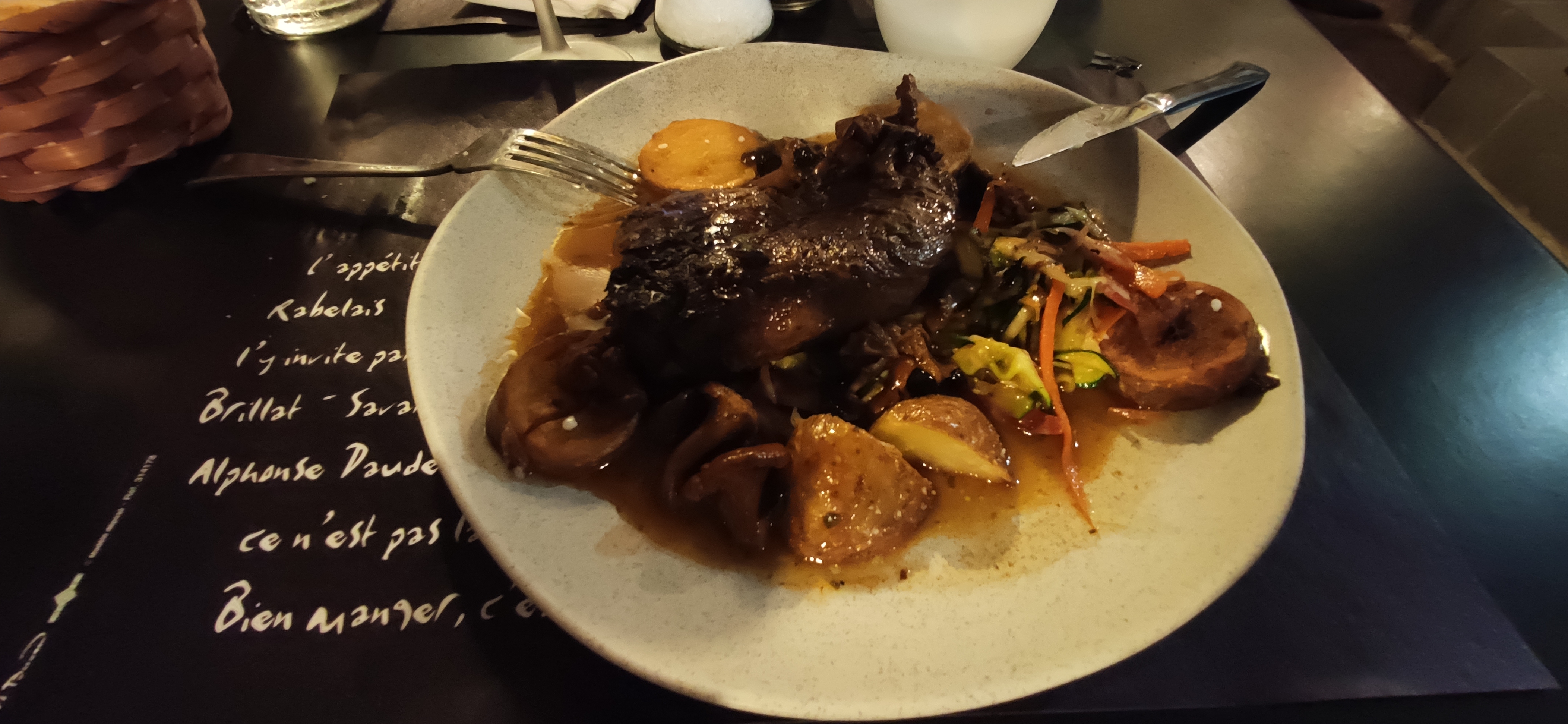 Accueil très sympathique Nous avons pris menu à 32€, bien servis copieux et bien chaud, très agréable ! Le cadre est sympathique et romantique. Pas besoin de courir après la serveuse qui nous apporte automatiquement du pain et de l eau quand il n y en plus. Très agréable ça ! Une petite lampe posée par table serait un super + car on ne voit pas très très bien ce qu'on mange, c est dommage parque c est très bon et bien présenté. Ça rendrait l endroit encore plus charmant. Merci pour ce super moment nous reviendrons !