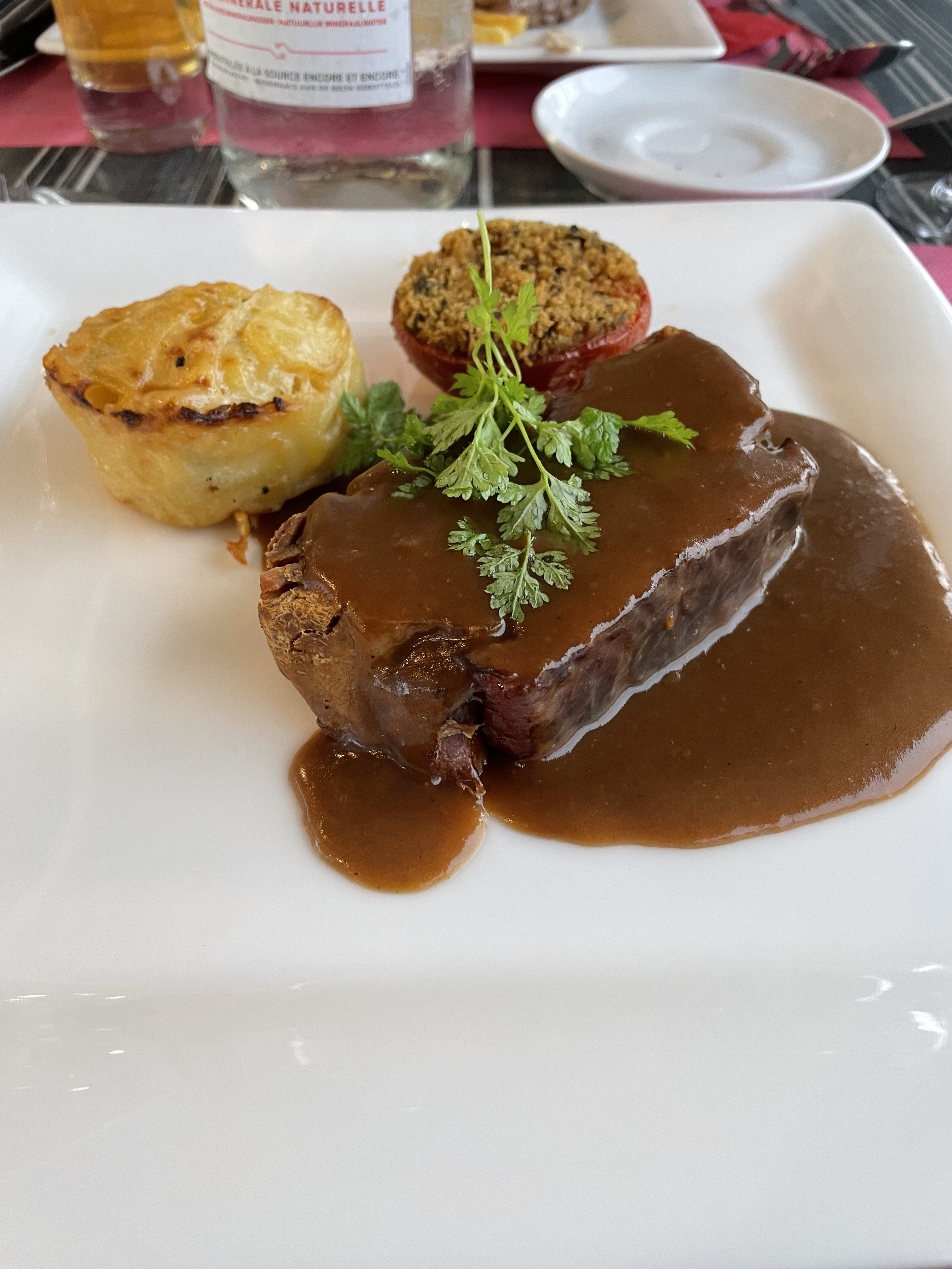 le service est à revoir, l'entrée servi à 4 personne les 2 autres entrée on été servi 30 minutes plus tard après réclamation. Le plat de poisson était sec et sans saveur, la viande était bonne. Le menu ne vaut pas les 45€ réclamé.
