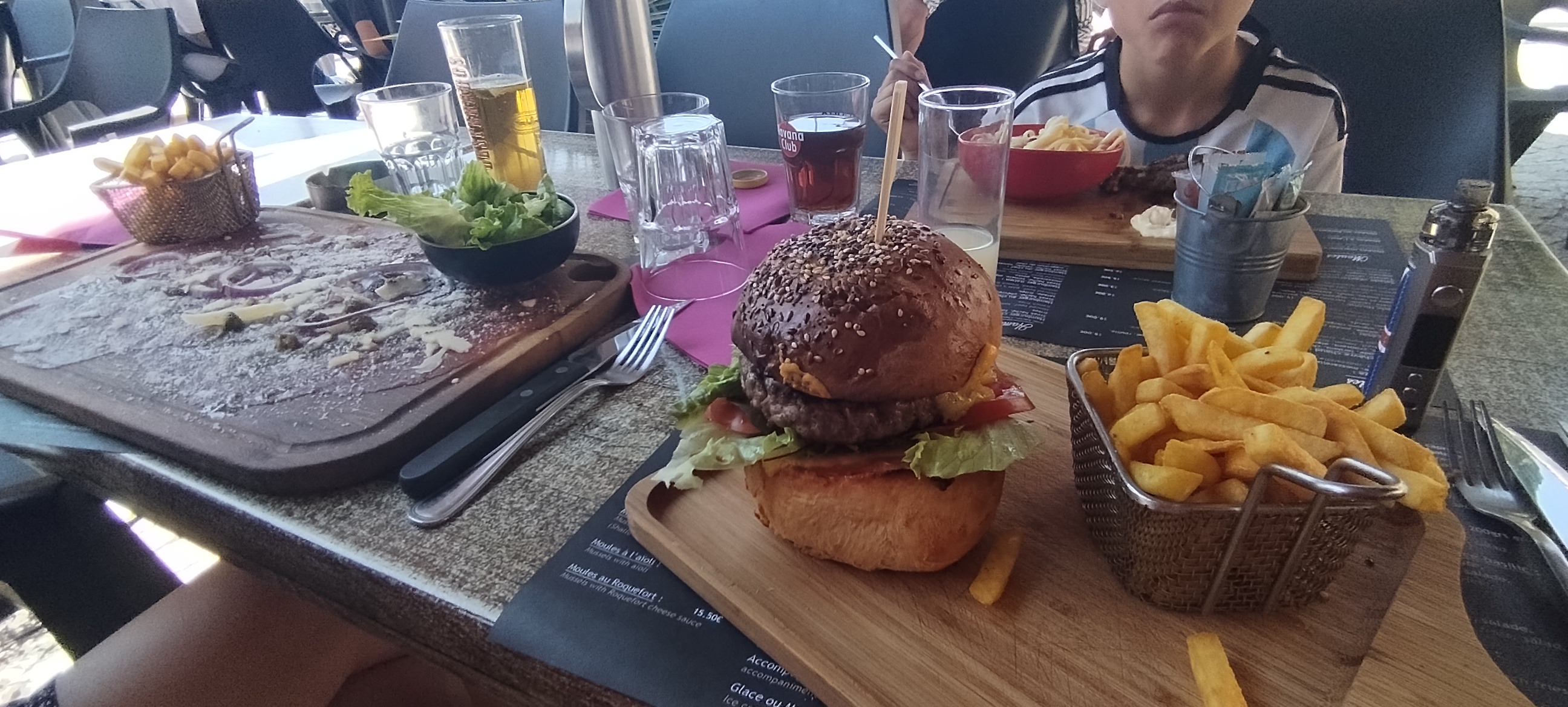 Très bon burger : le montagnard, une tuerie ! Ça a du goût, c'est fourni et généreux ! Accompagné copieusement de frite et d'une petite salade. Nous nous sommes régalés ! Suivi d'une coupe de glace Très bonne et d'un ptit café pour faire passer tout ça ! Personnel sympathique et au petit soin 😋