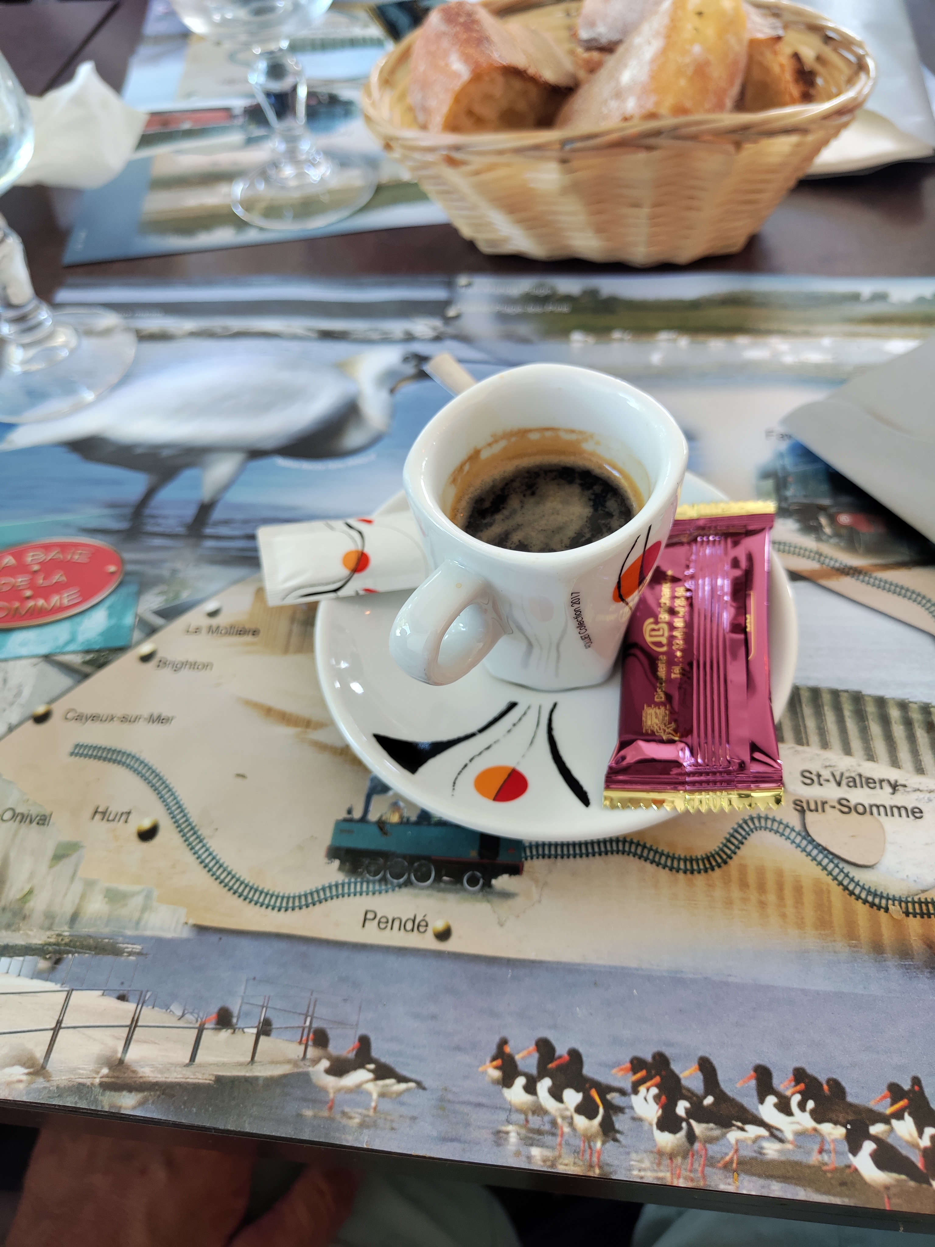 Adresse, à éviter pour manger....! Boire un verre OK.. Nos moules étaient trop cuites servies dans la minute., elles devaient nous attendre sur le coin du feu depuis un moment... Et les frites bof bof... Nous sommes belges jamais vu ça... Le serveur avait les doigts dans notre verre de bière pour nous les apporter.... Dommage pour eux nous revenons régulièrement à Saint Valery-sur-Somme mais certainement plus à la terrasse !