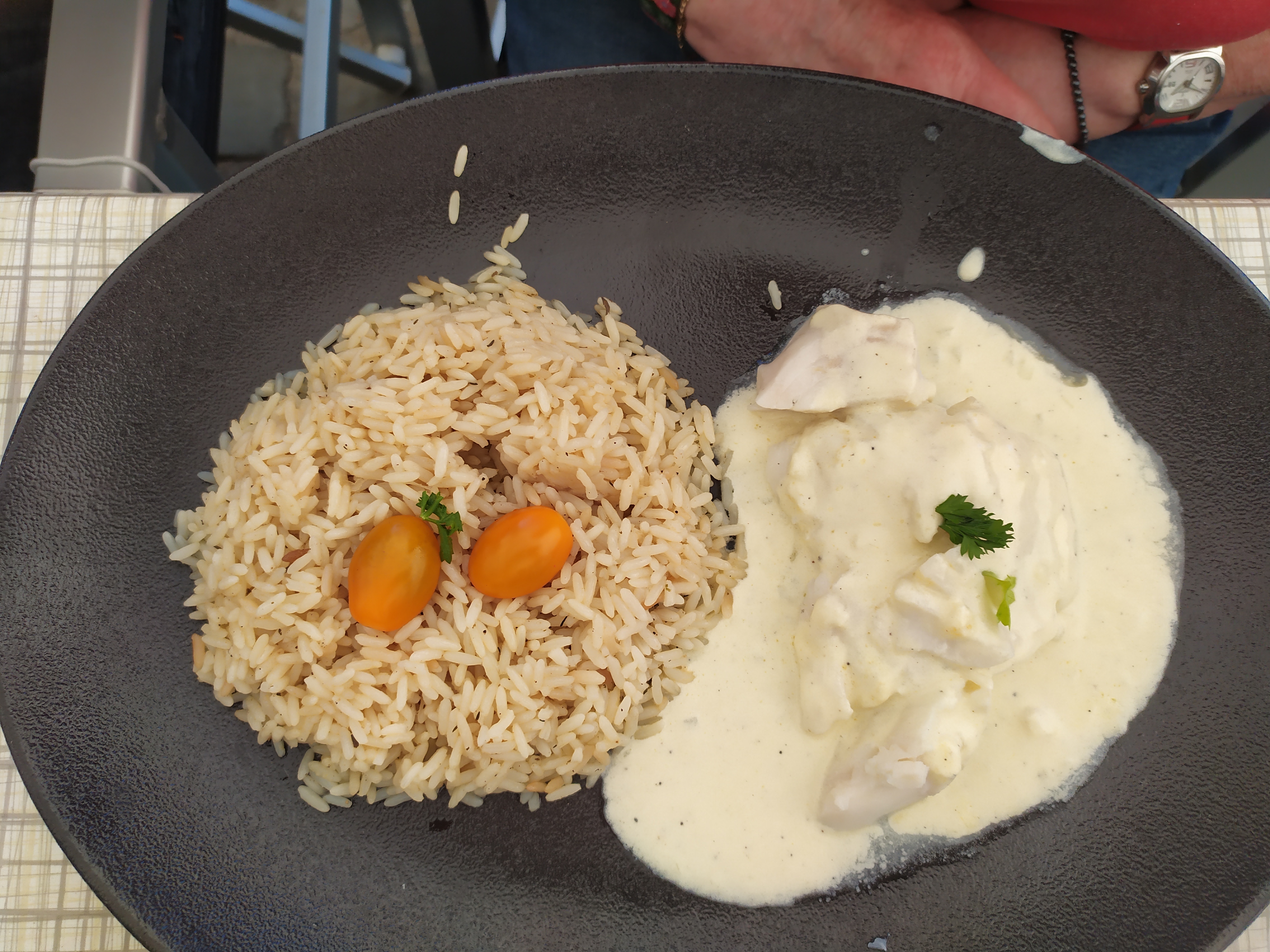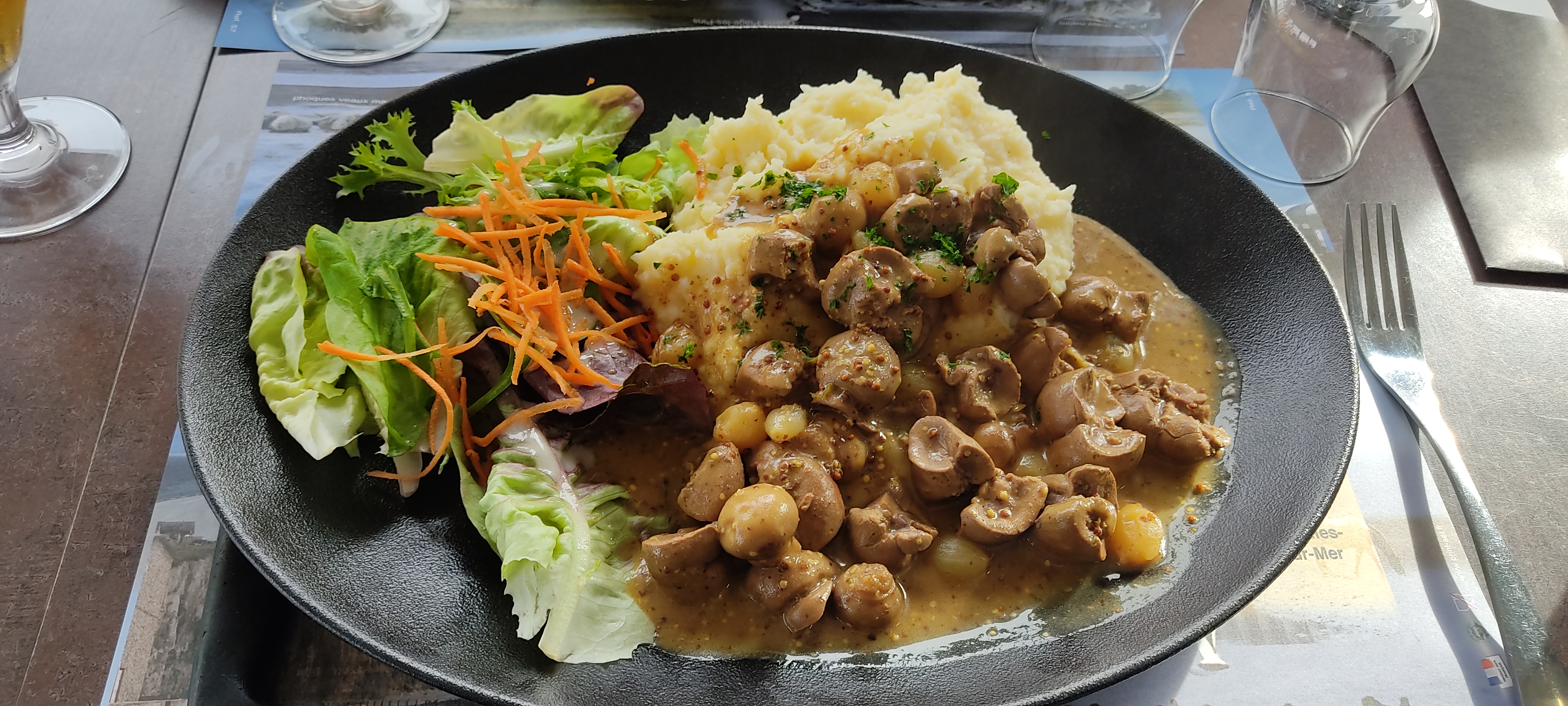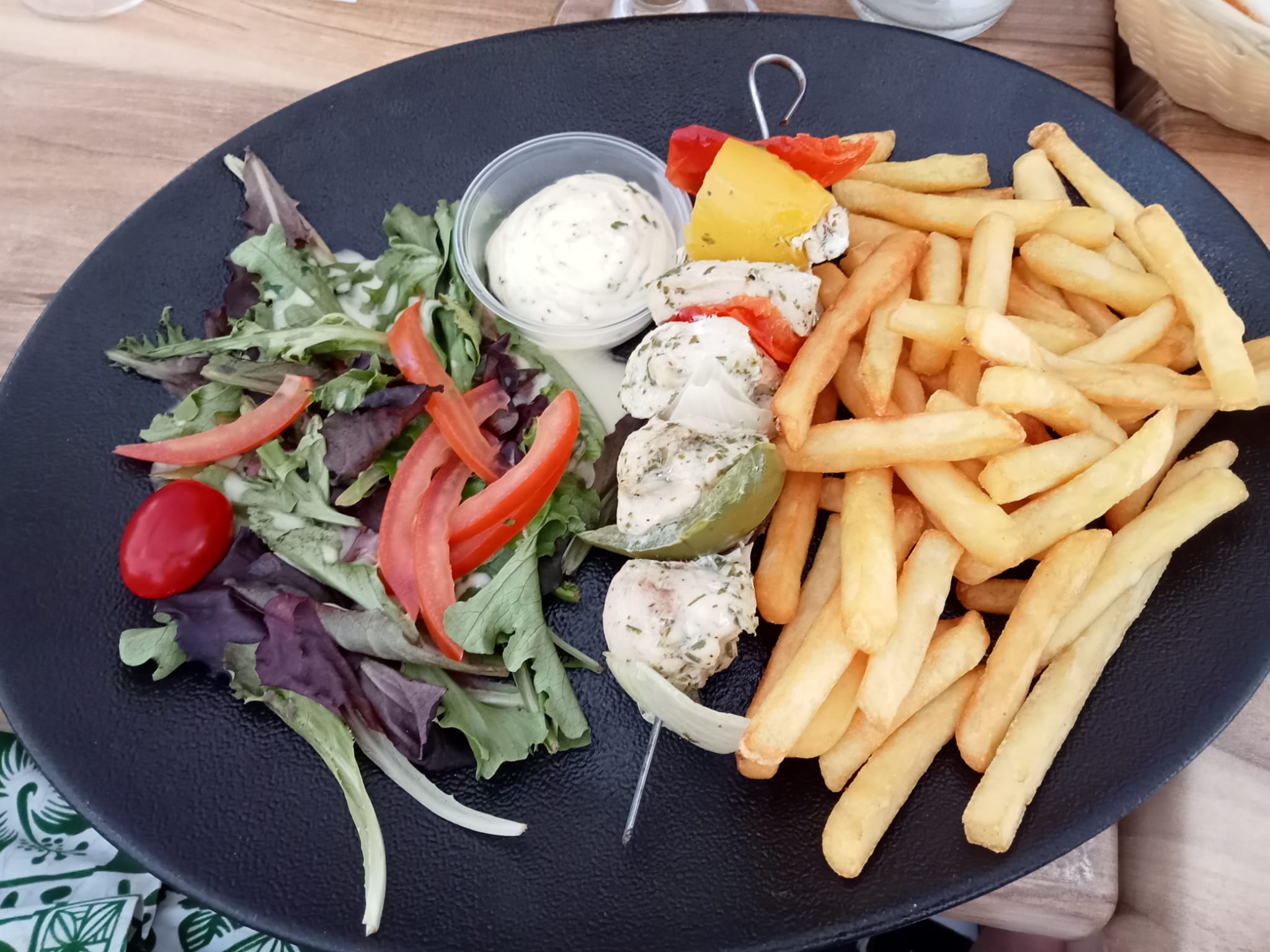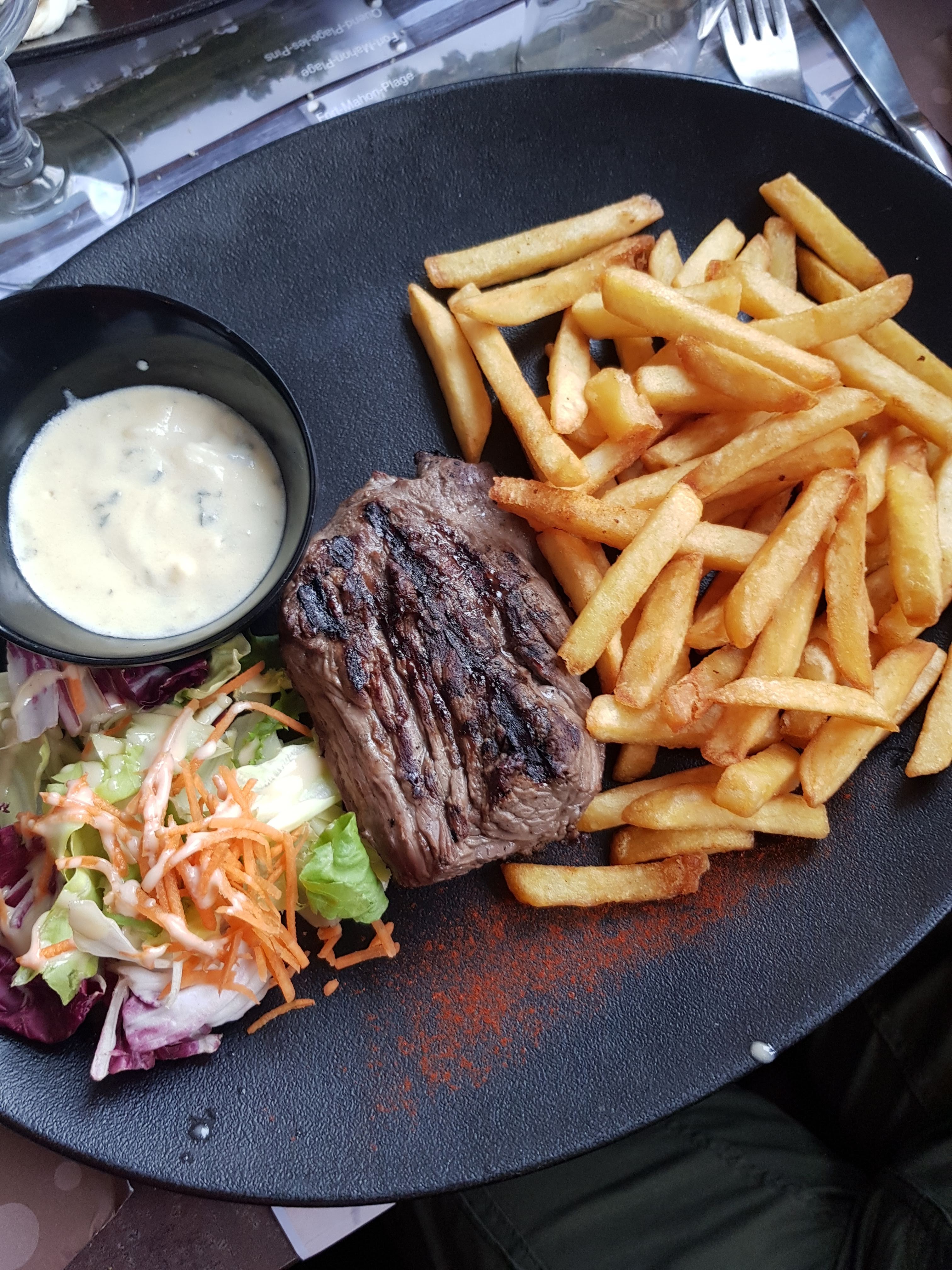 Repas simple, sans chichi, moules au bleu excellentes et copieuses, serveur très sympathique, terrasse abritée ce qui a été très utile car nous sommes arrivés juste avant la pluie