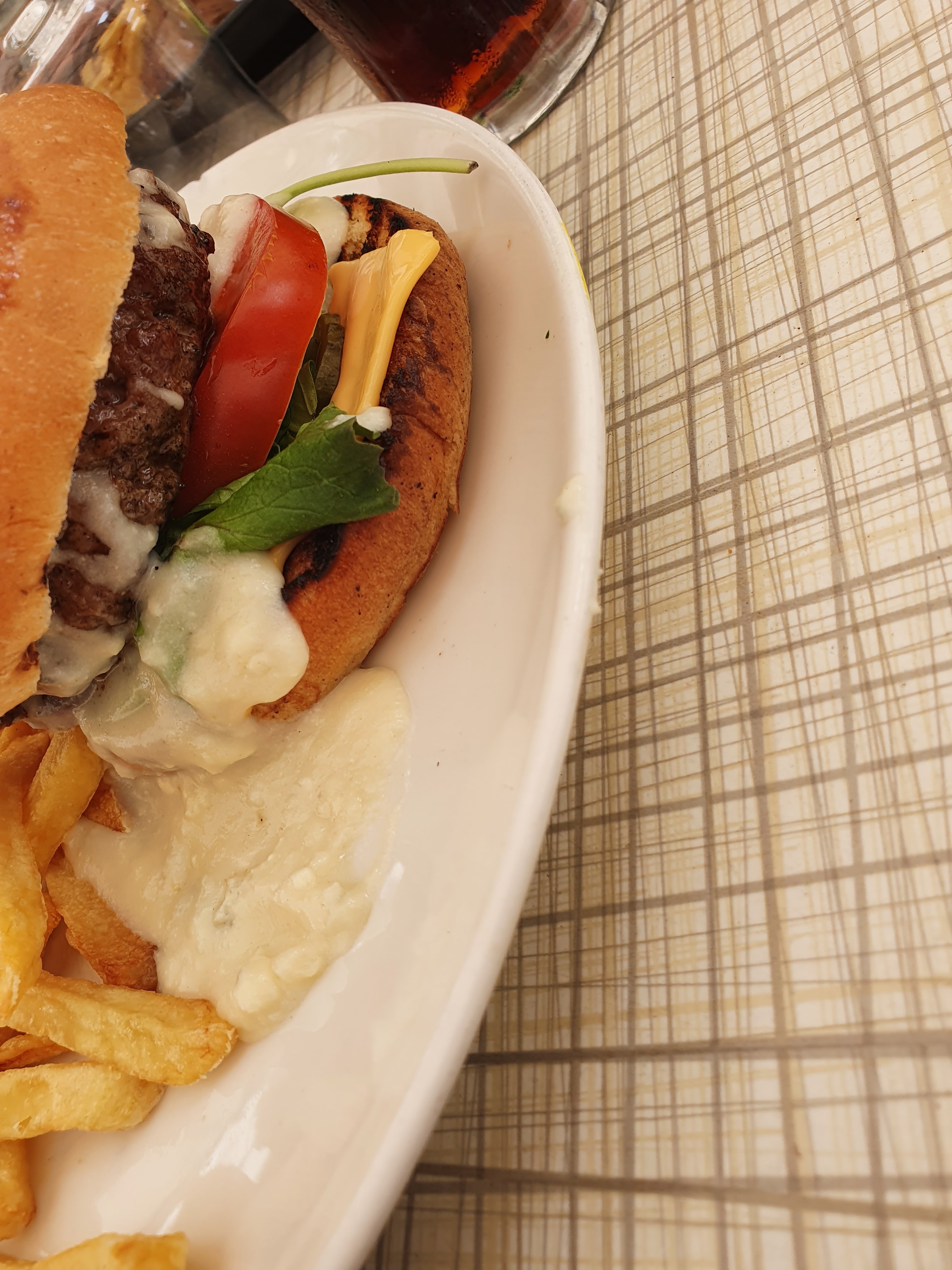 Le burger était pas mal. Par contre le fish and chips était caoutchouteux, soit friture mal maîtrisée soit pas préparé a la minute, dommage