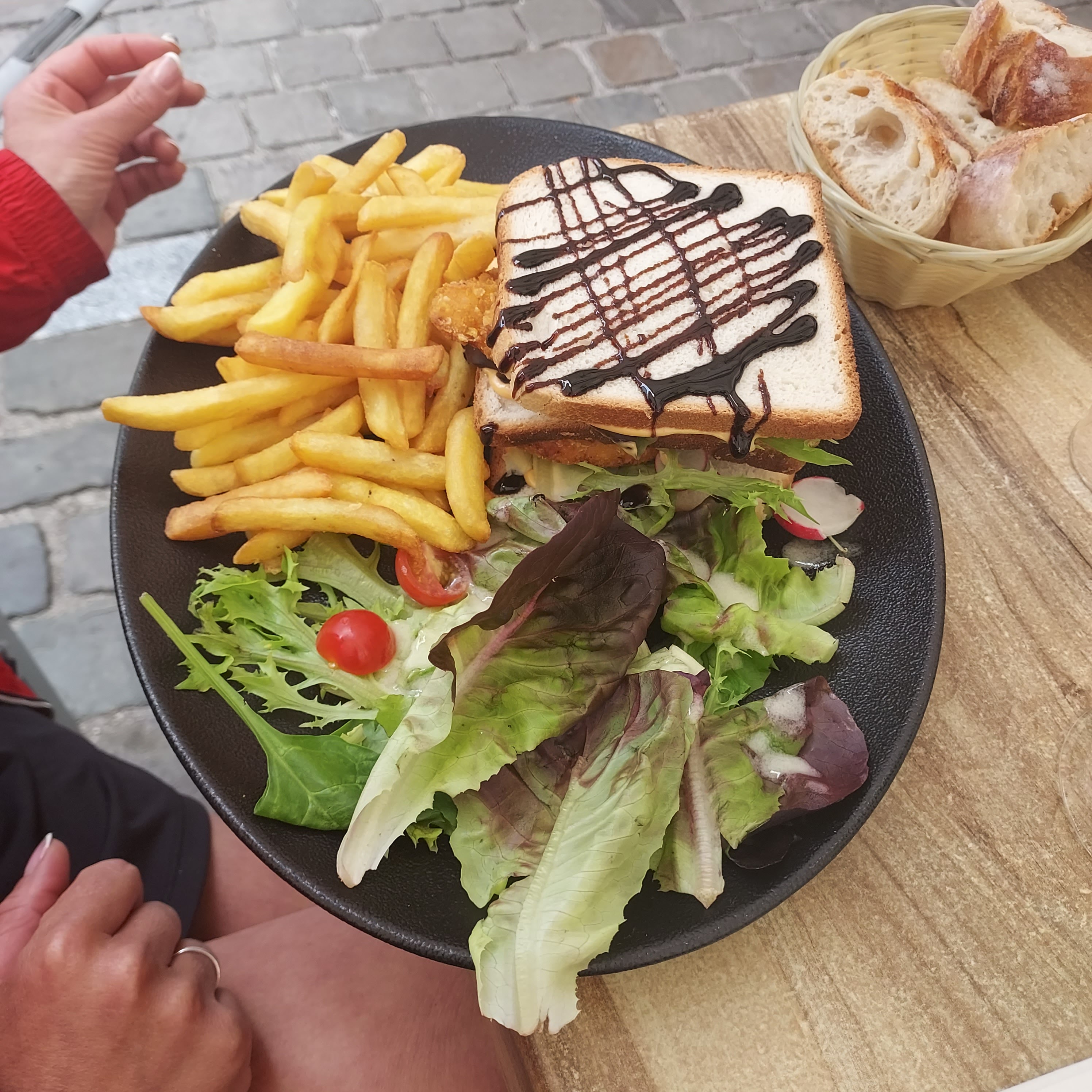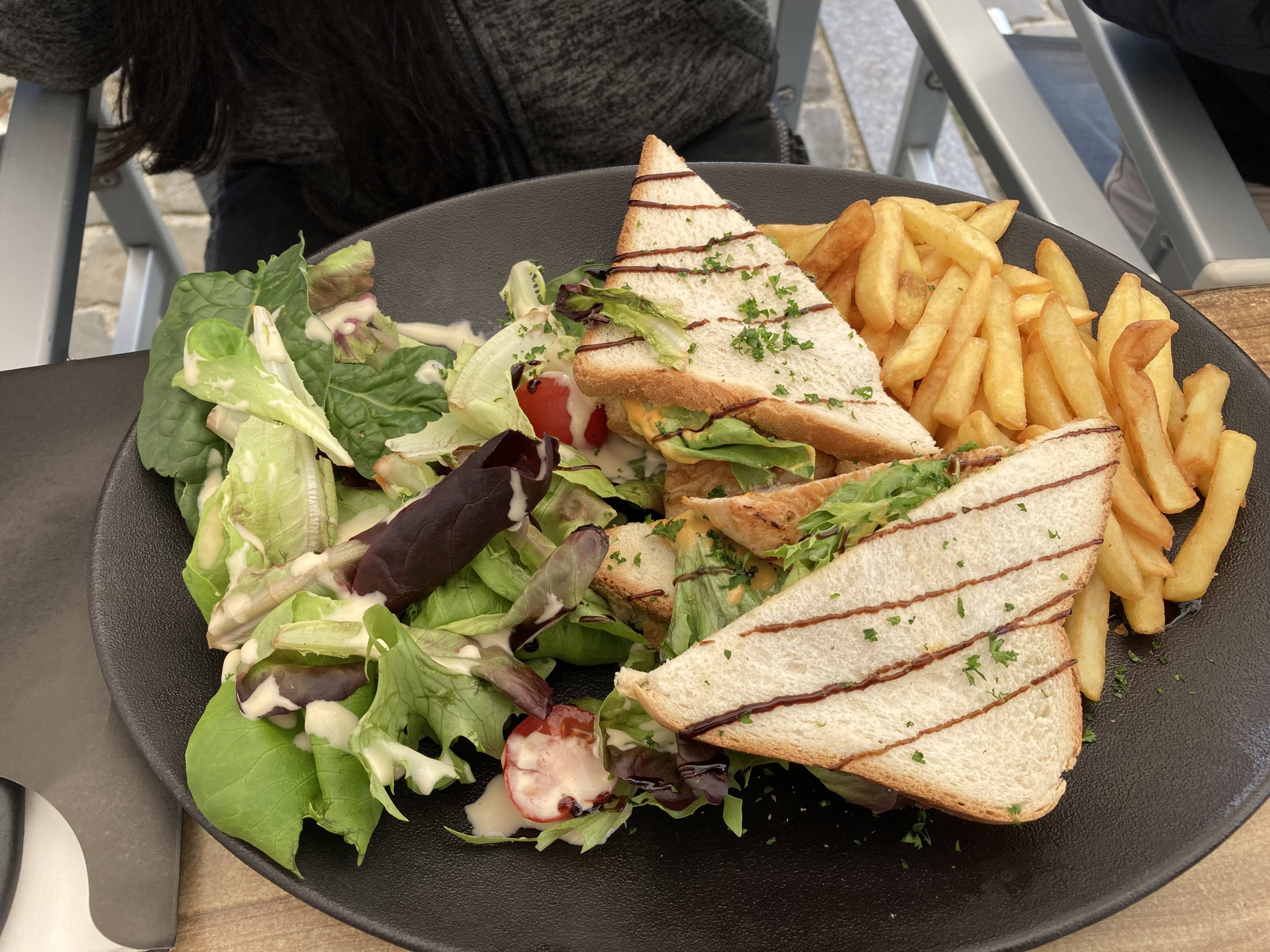 Super club sandwich avec une sauce salade... restaurant bruyant et plat servi froid. Les serveurs ne sont pas organisés et nous demande à plusieurs reprises notre commande. Déçu des plats ( cuisson, incohérence dans les plats demandés), on en informe une serveuse qui ne prend même pas la peine de s'excuser pour ce désagrément.. à fuir complètement sauf si vous avez 35euros à perdre