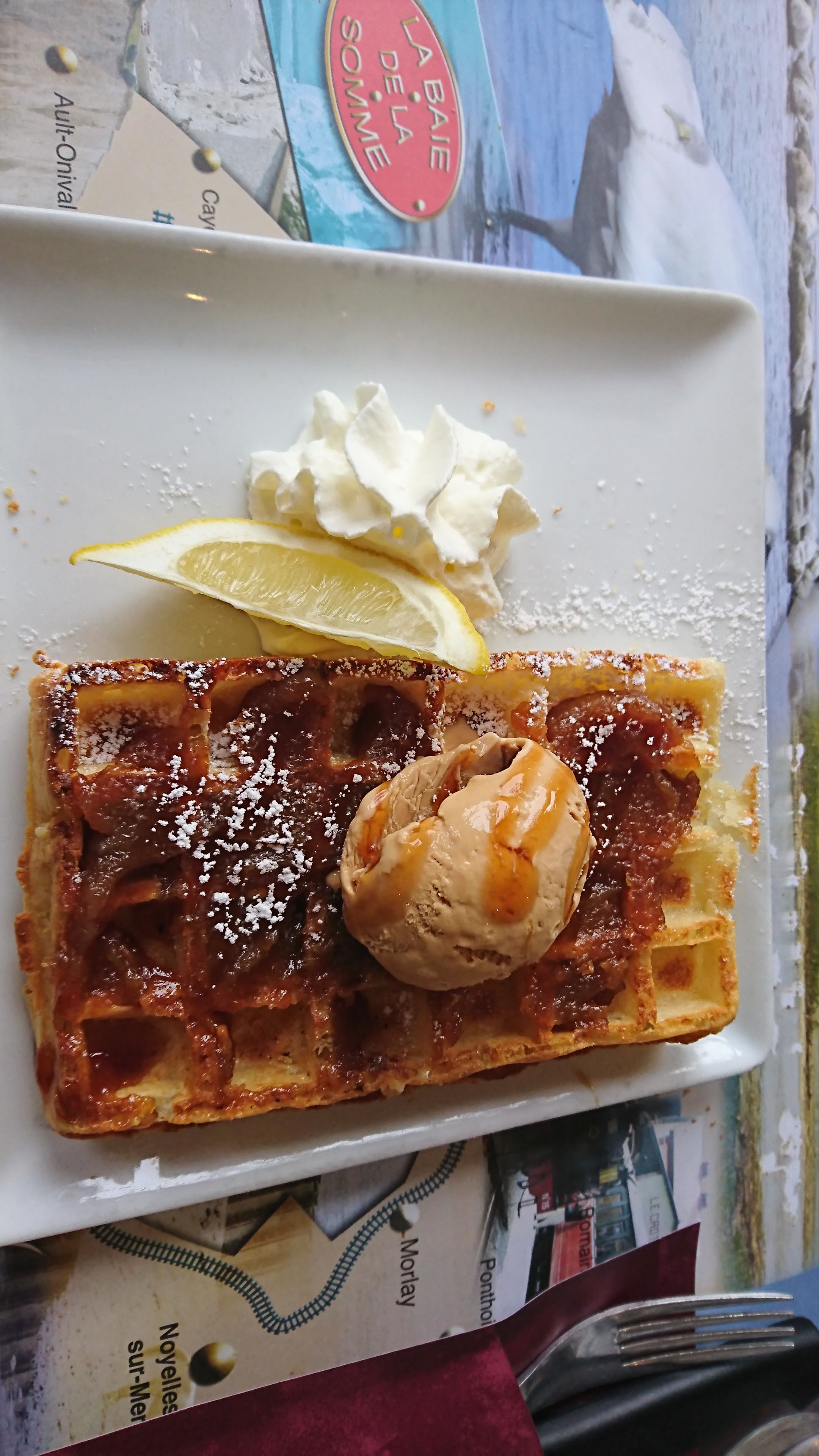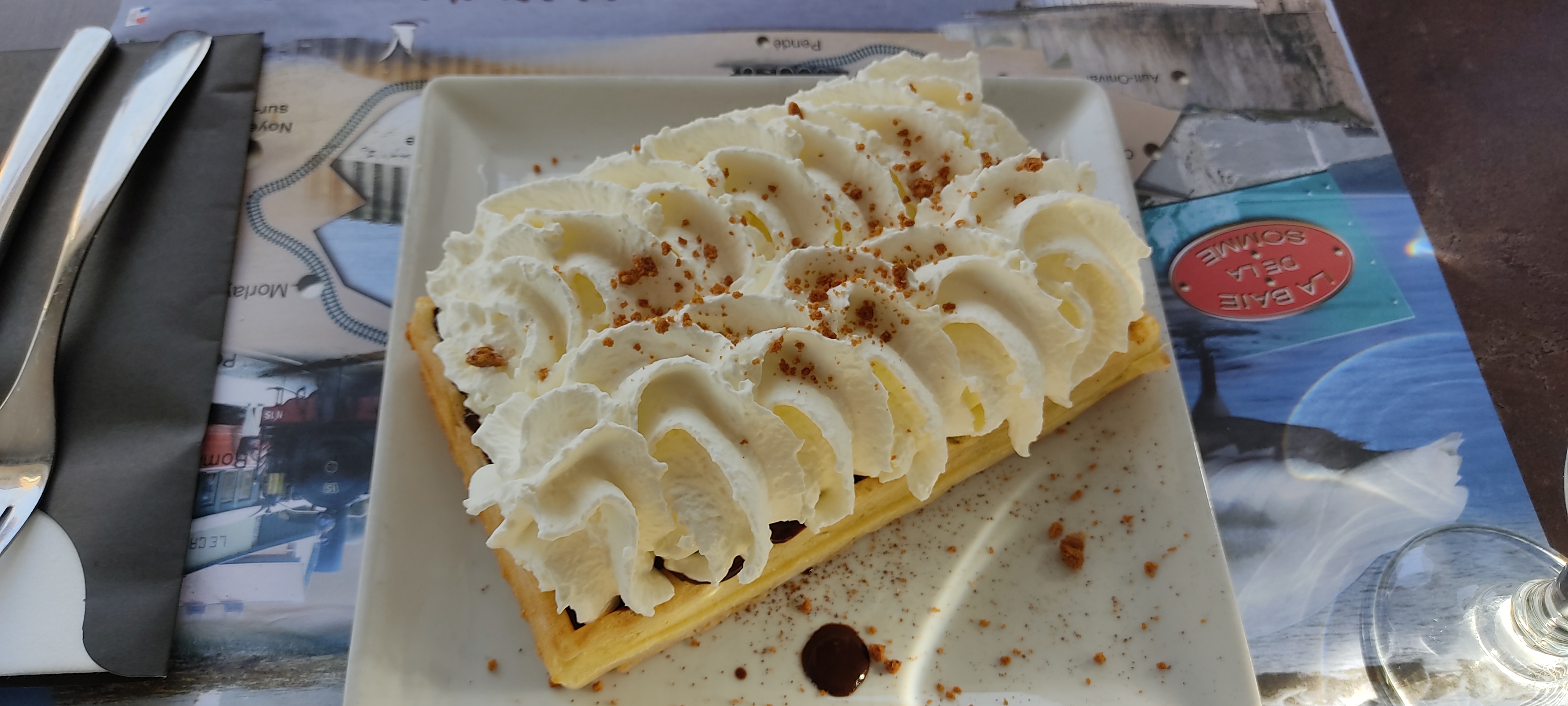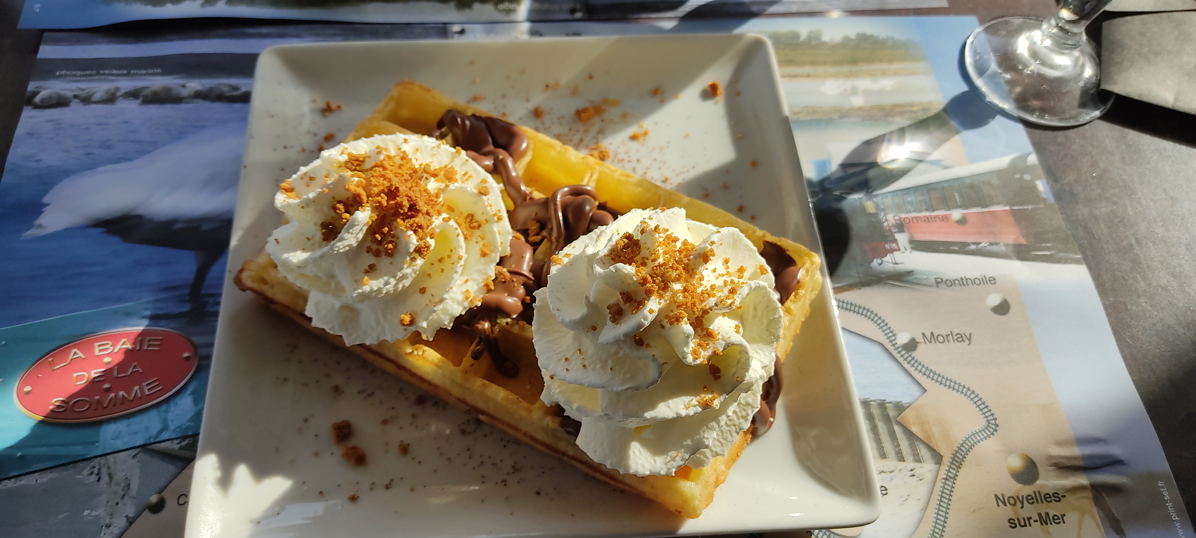 Une pause gourmande après une ballade le lors du quai. Un bonheur, gaufre délicieuse, le service avec le sourire.