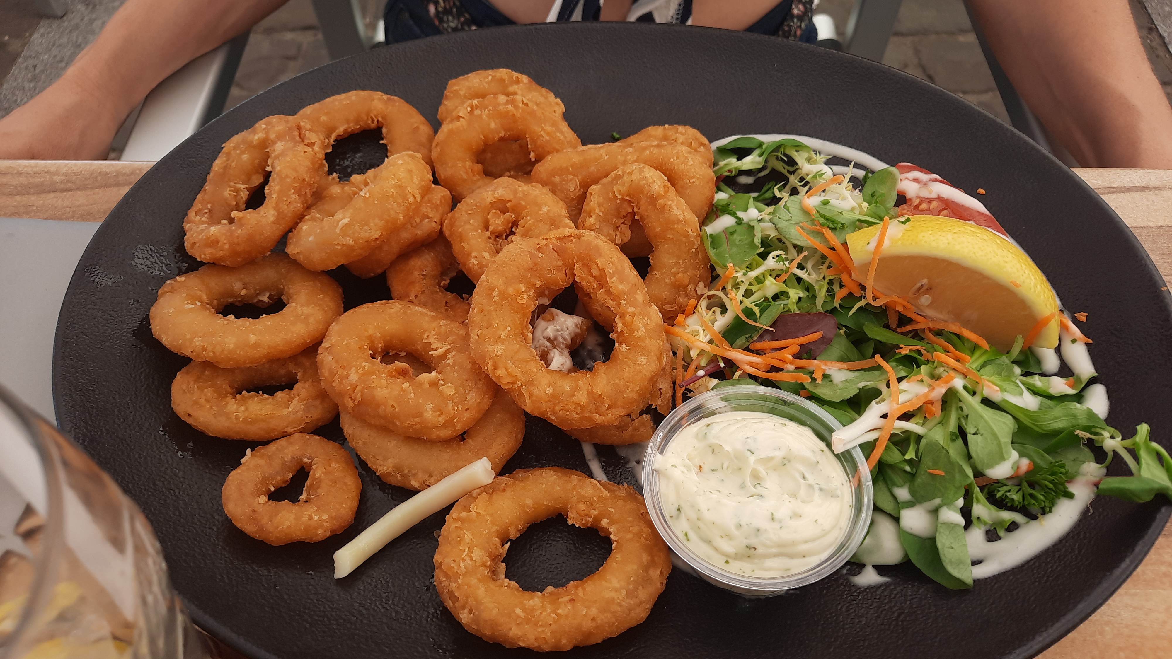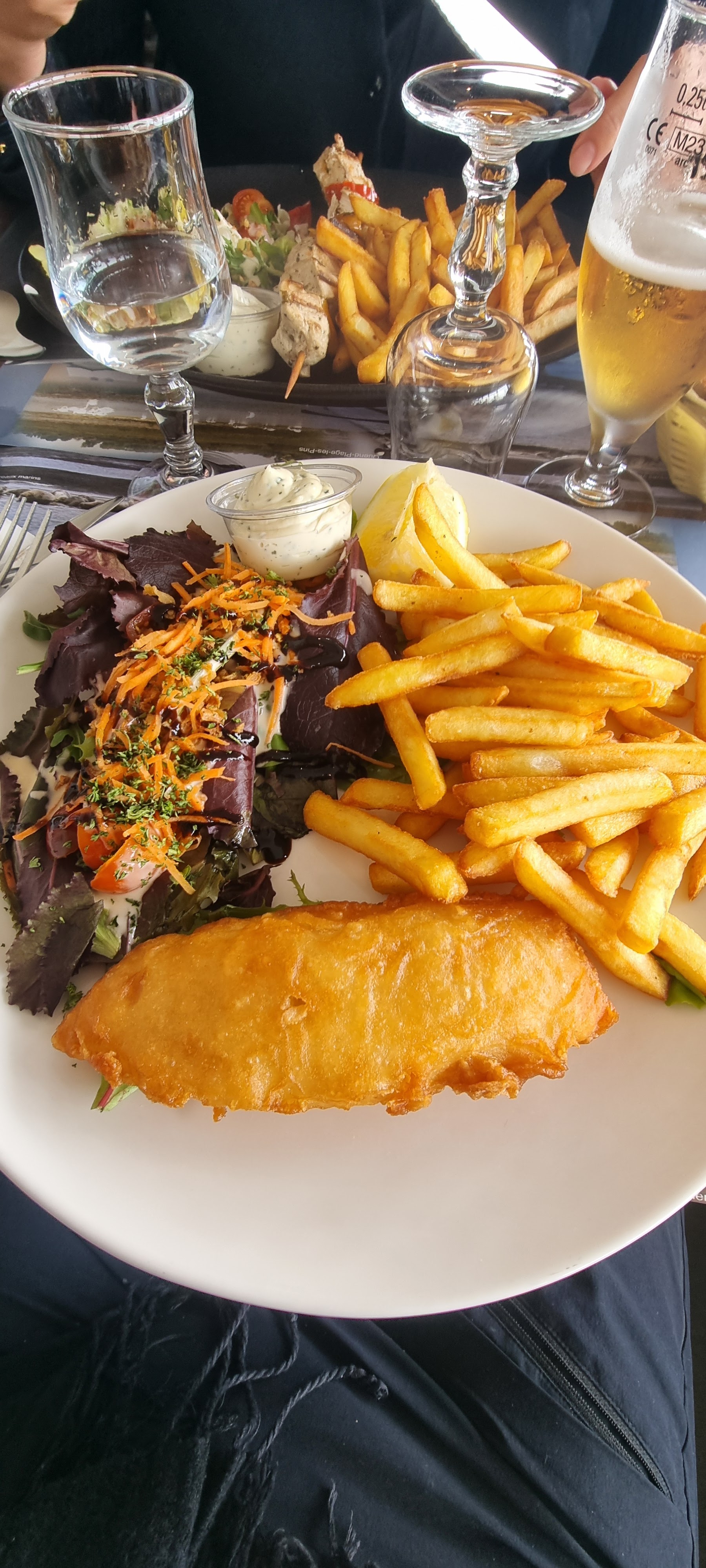 Pris juste une salade pirate très copieuse, pas déçue et fish and chips correct Pas donné mais correct rapport qualité prix Apprécié le service rapide, C est rare Par contre pas d au revoir qd nous avons quitté la terrasse après avoir payé