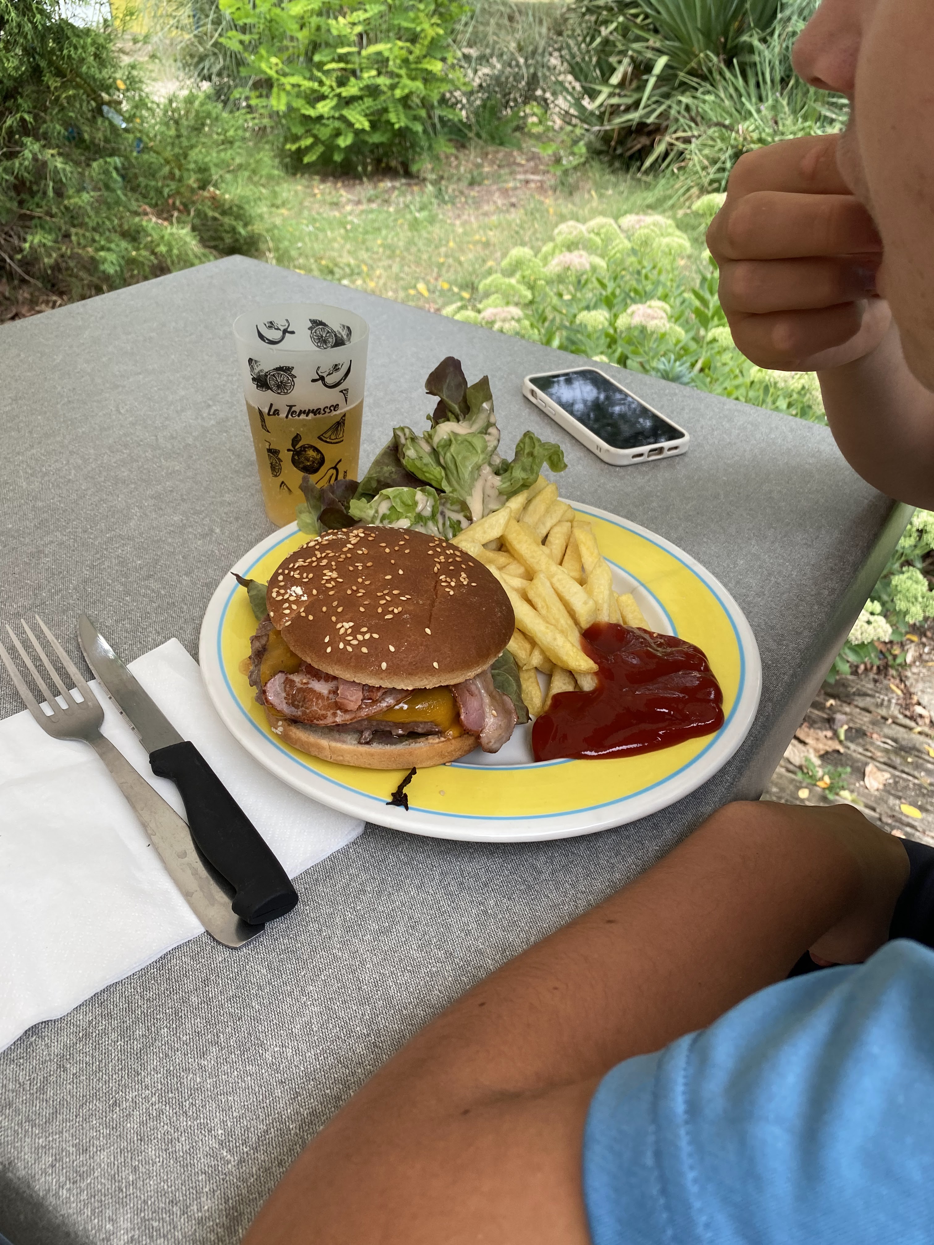 Le gérant est sympathique. Le restaurant moins... Nous avons mangé un hamburger et frites. Le hamburger pas chaud et la tranche de chèvre posée même pas fondue. Les tables ne sont pas nettoyées. Aucun service puisque nous allons chercher notre assiette quand elle est prête. Le hamburger frites est à 13 EUR. Dommage.