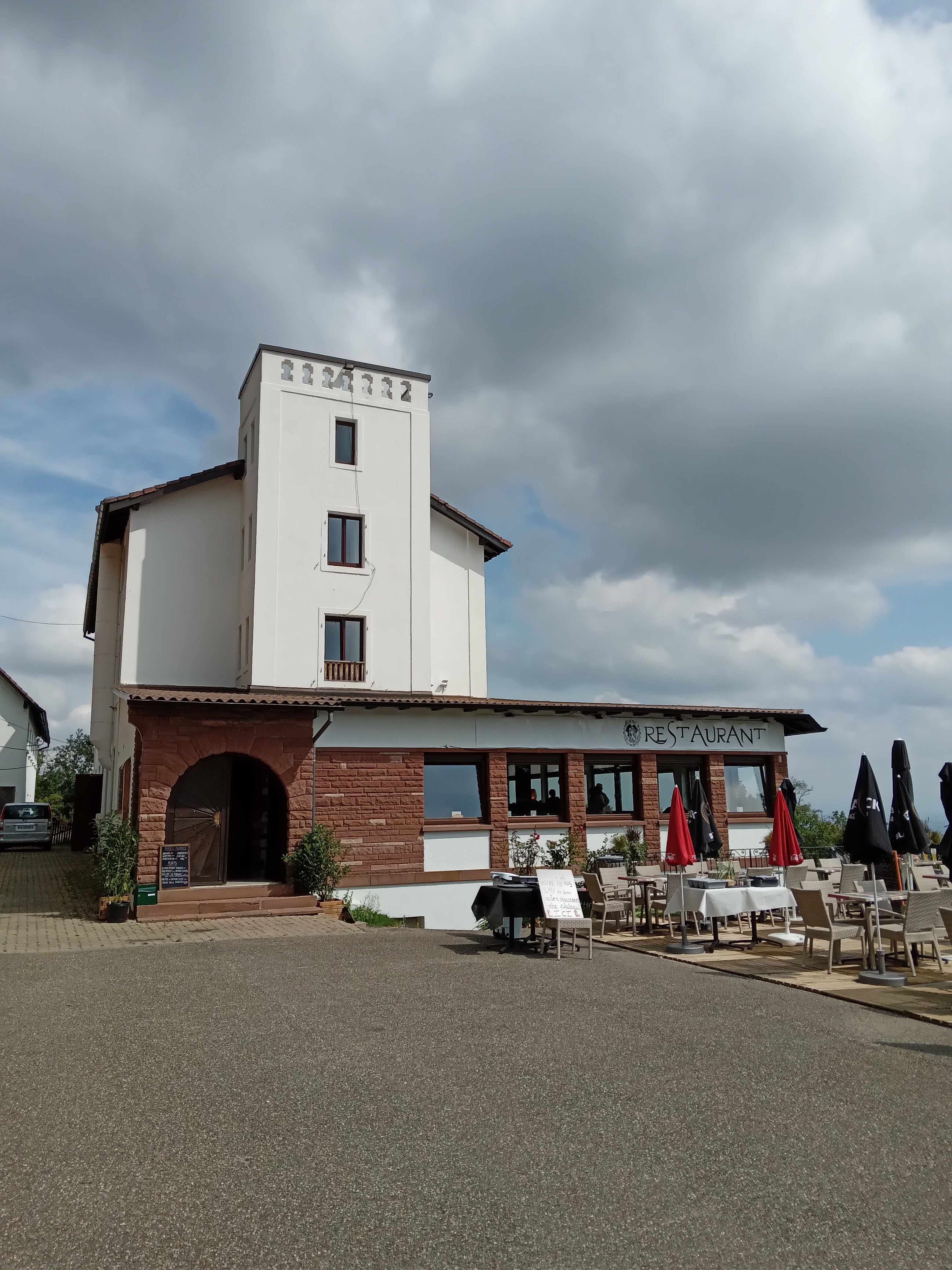 Cuisine ordinaire mais belle terrasse avec vue sur les plaines rhénanes. Arrêt pratique après la visite du château du Koenigsbourg et même un samedi de juillet où le château était très fréquenté, il y avait des places assises en terrasse. Ce n'est pas un restaurant à service complet mais vous commandez au bar et récupérez votre nourriture une fois prête.