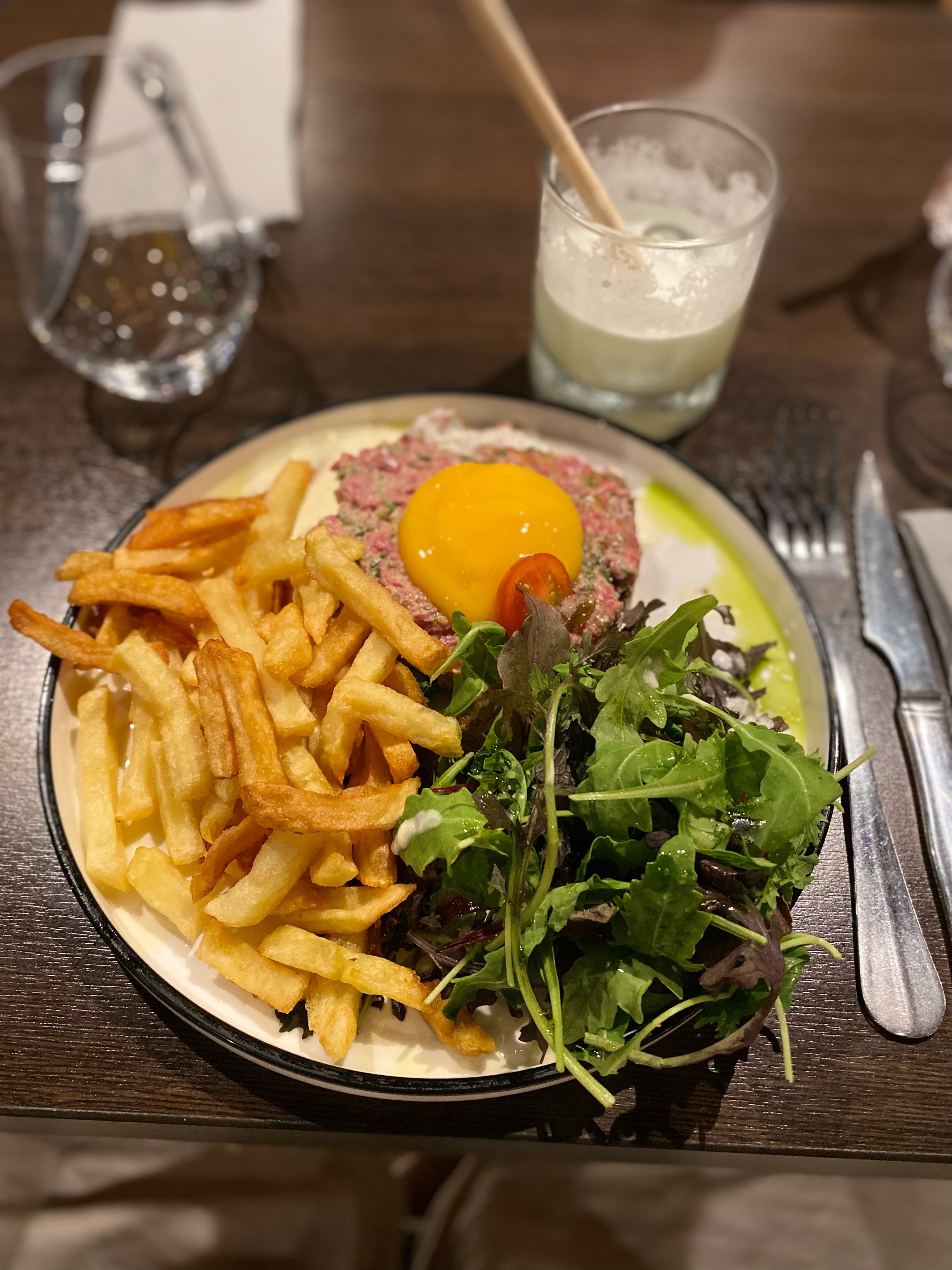 Belle découverte ce restaurant à la déco chic et sobre. Possède une grande terrasse conviviale. Accueil parfait et personnel aux petits soins. Assiettes élégantes et joliment dressées. Cuisine pleine de saveurs : Faux filet et souris d'agneau confite, un délice. Frites maison extra. Mousse au chocolat au lait bien réalisée. Vin au pichet très bien. Très bon rapport qualité prix. Une excellente soirée, à refaire sans hésitation.