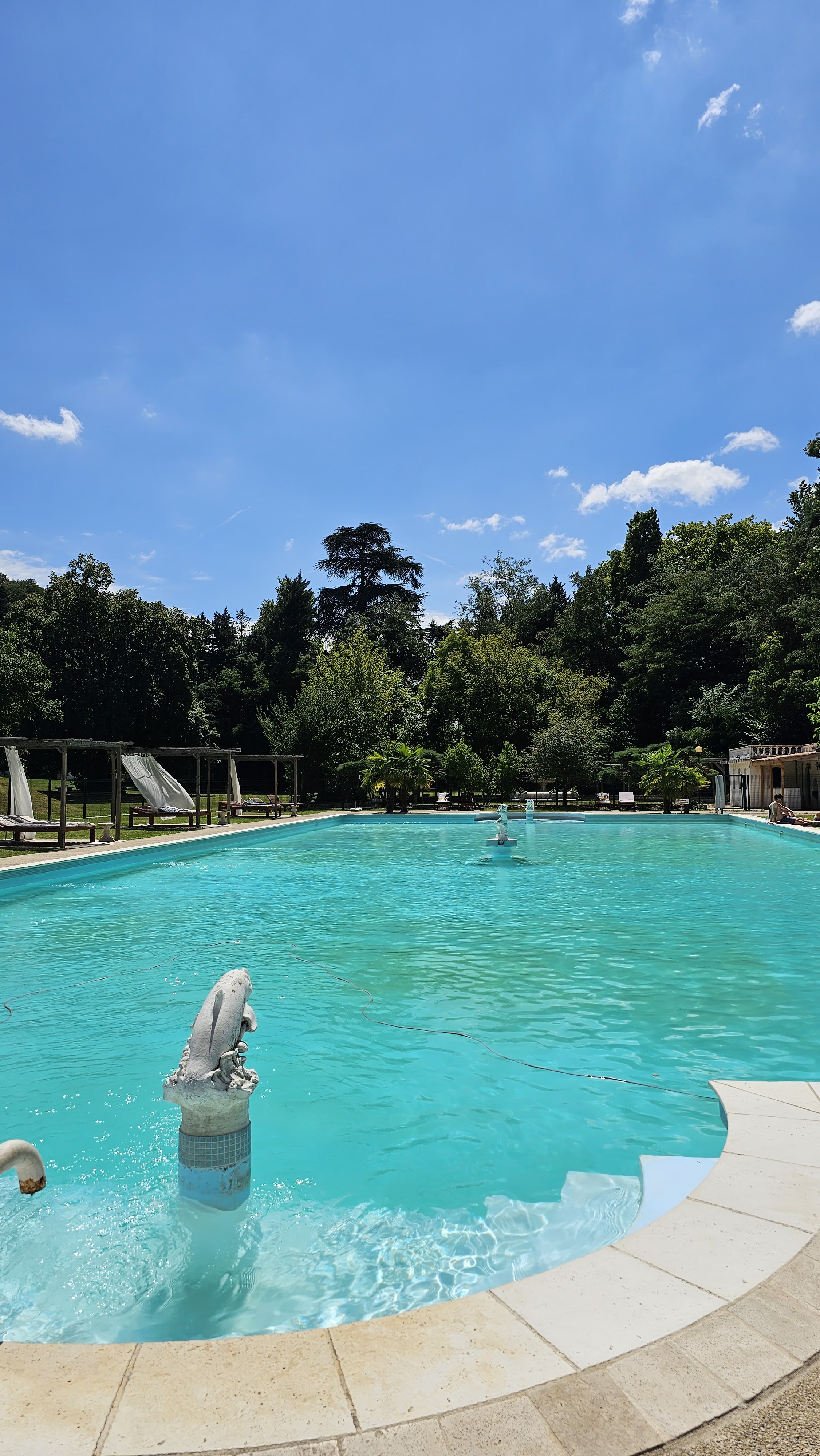 Cadre magnifique. Cependant il y a un problème au niveau du service. Je suis déjà venu l’année dernière et le problème était le même. Un service très long, aucune explication sur le menu. Menu unique ce soir là avec un porc à la broche, nous n’étions pas au courant. Le morceau de porc à 30 euros me semble un peu excessif sachant que le service n’est même pas fait à table mais avec un système de jetons pour allez récupérer son morceau en cuisine. Très déçu alors que le château et la piscine sont splendides.