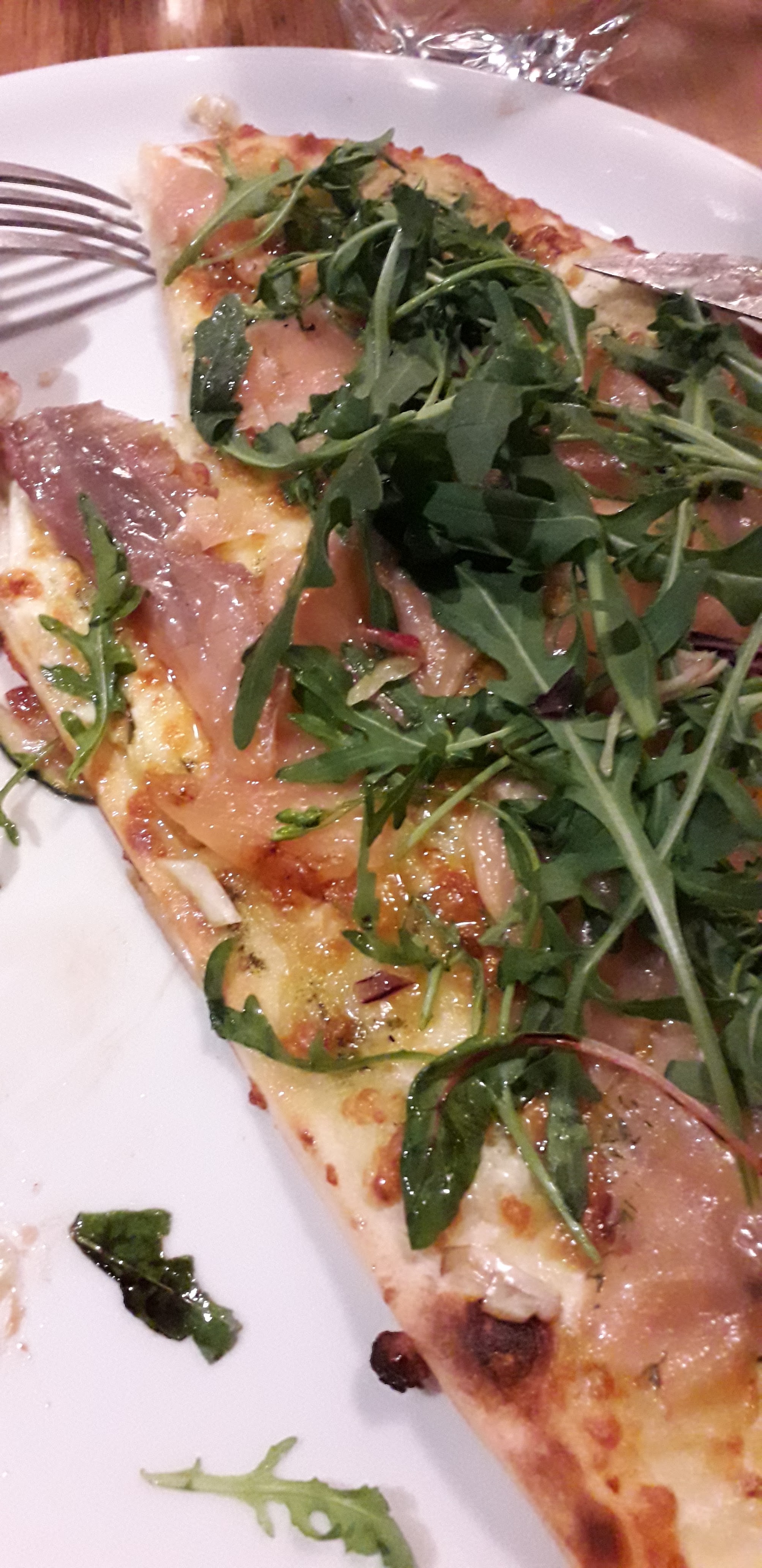 Une excellente adresse !! D'abord le lieu est très sympa, tout en baie vitrée, bien décoré, les plats sont constitués d'ingrédients de très bonne qualité, les salades composées sont top! Rare d'avoir un excellent melon, du (vrai) jambon de parme coupé fin et de la mozzarella digne de ce nom dans une même assiette ! Arrivés à 14h, les serveurs et serveuses restent serviables après un rush du midi qui n'affectent pas leur sourire ! L'idée moitié pizza/moitié salade dans une même assiette, je n'avais jamais vu! Excellent rapport qualité/ prix Je recommande