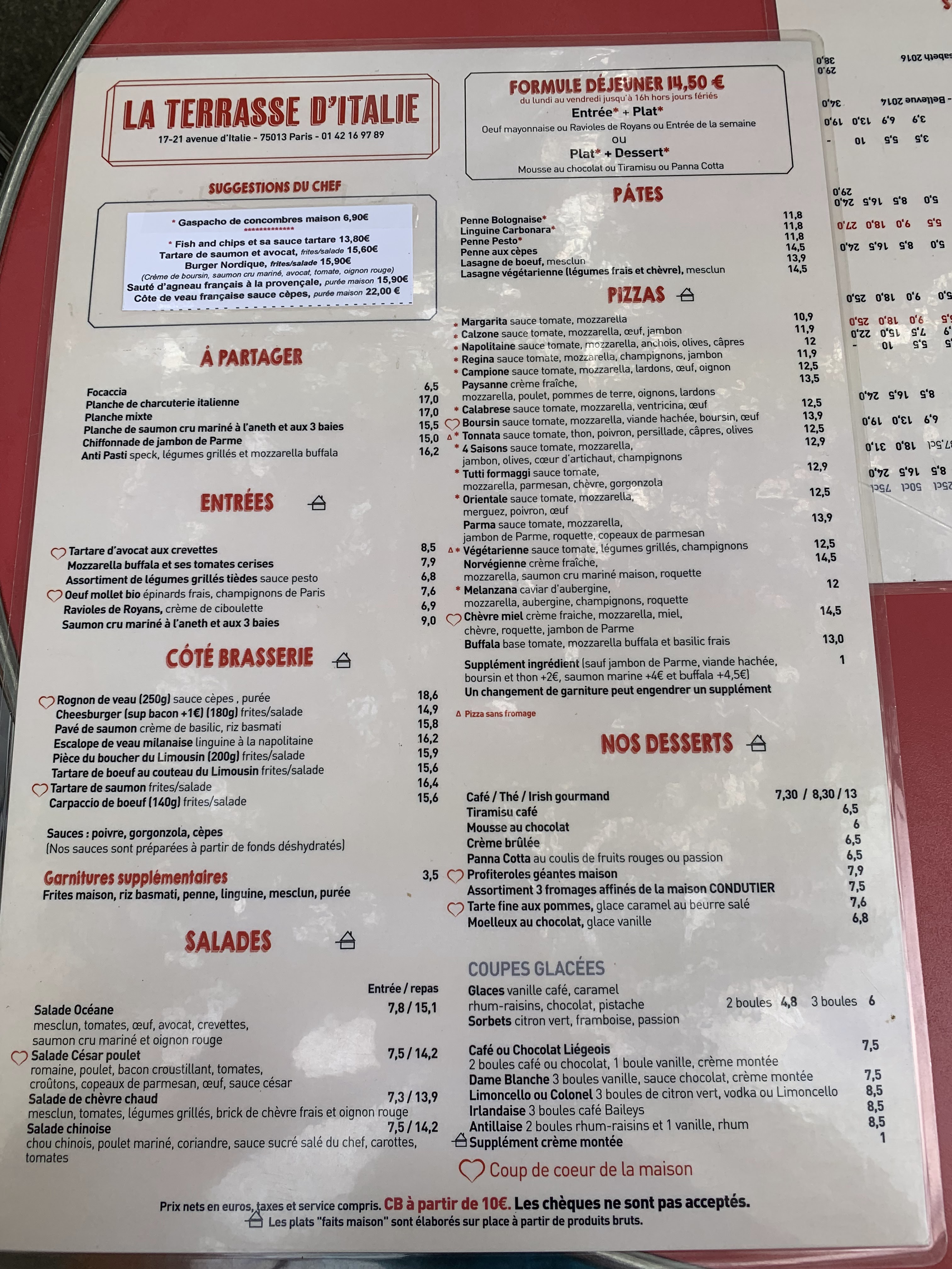 C'est gustativement bon, grande terrasse assez loin de la circulation, service correct et rapide, mis 4 étoiles car un peu cher ex. pizza autour de 15, coca 4,20 etc.