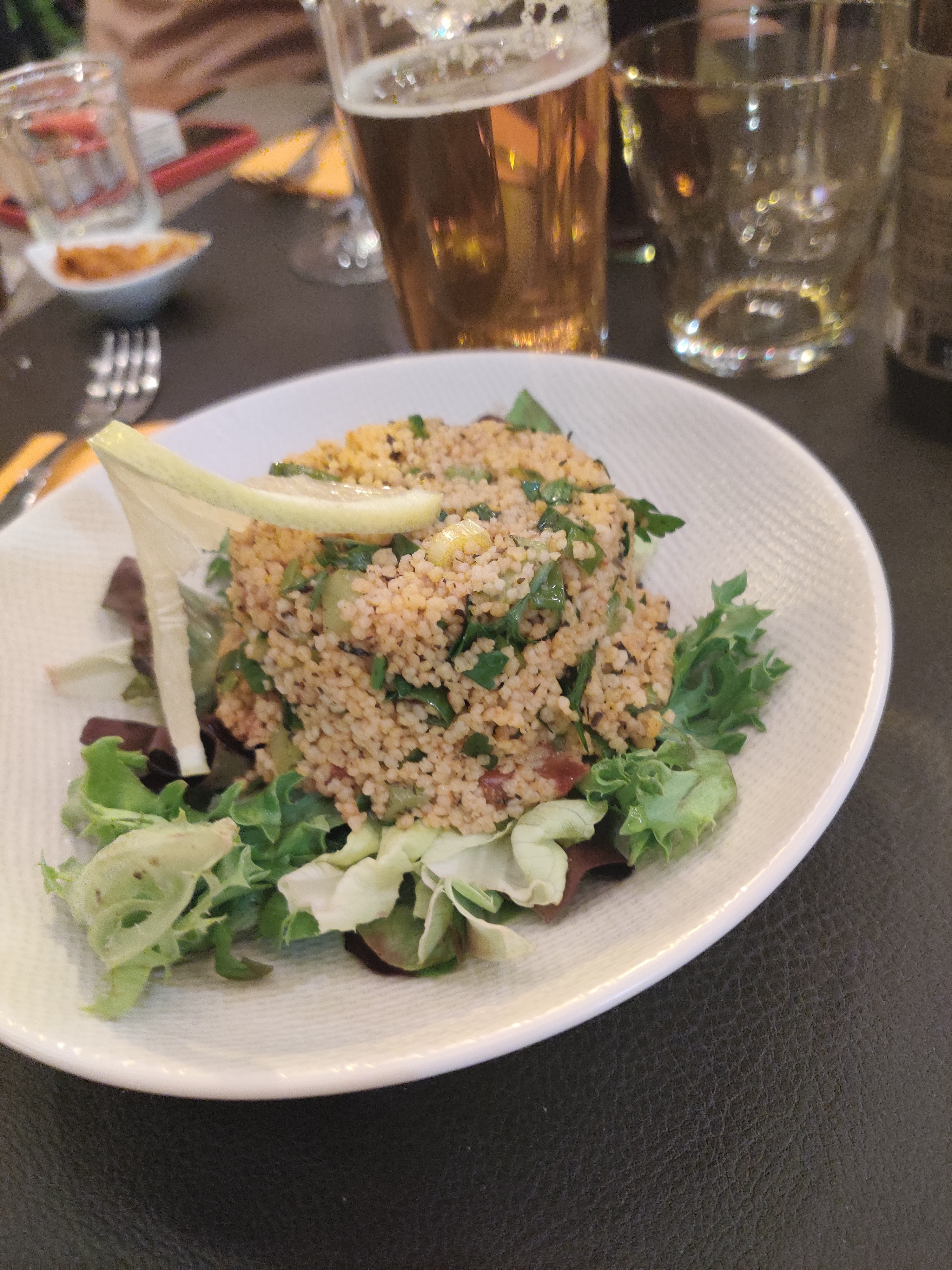 Endroit très sympa et le personnel également. La carte est variée. Tout était bon. Pour moi le canard était un poil trop cuit peut-être, mais le reste parfait.