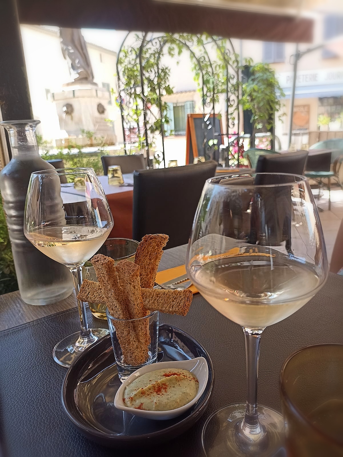 Petit moment de détente sur la terrasse ensoleillée, accueil toujours aussi chaleureux,je reviens avec plaisir déguster mon verre, prochainement je viendrai tester la cuisine