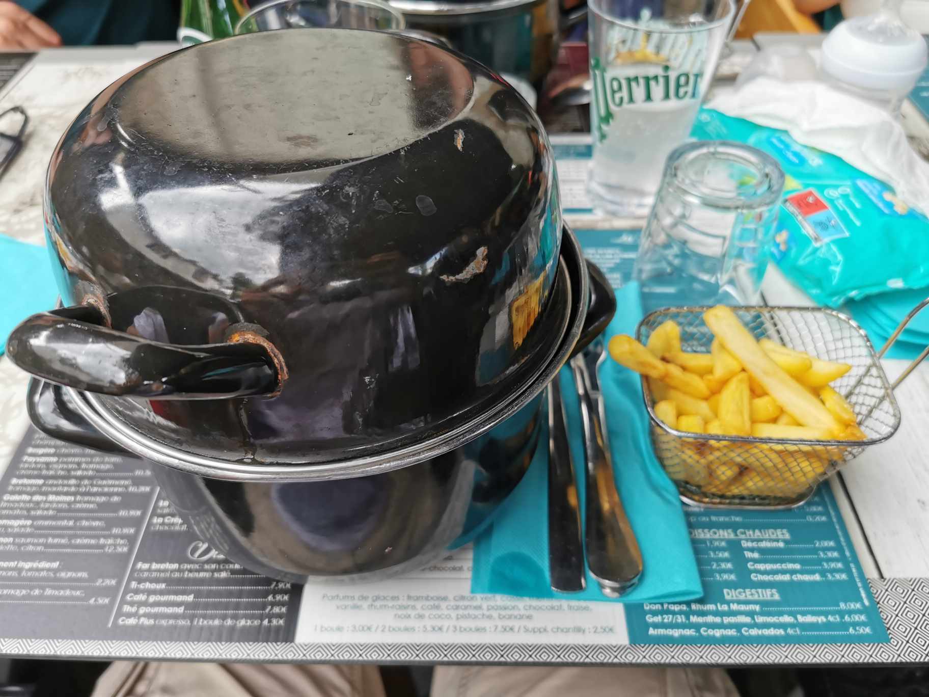 Après une heure d attente nous avons interpellé la patronne Complètement désorganisée oublié de transmettre notre commande en cuisine Des petits serveurs sympas au bout de la vie 3 tables de vaisselle sale à l entrée du restaurant Moules bien cuisinées mais casserole très maigre Il doit y avoir cauchemardesque en cuisine et une patronne qui devrait apprendre à gérer 😱