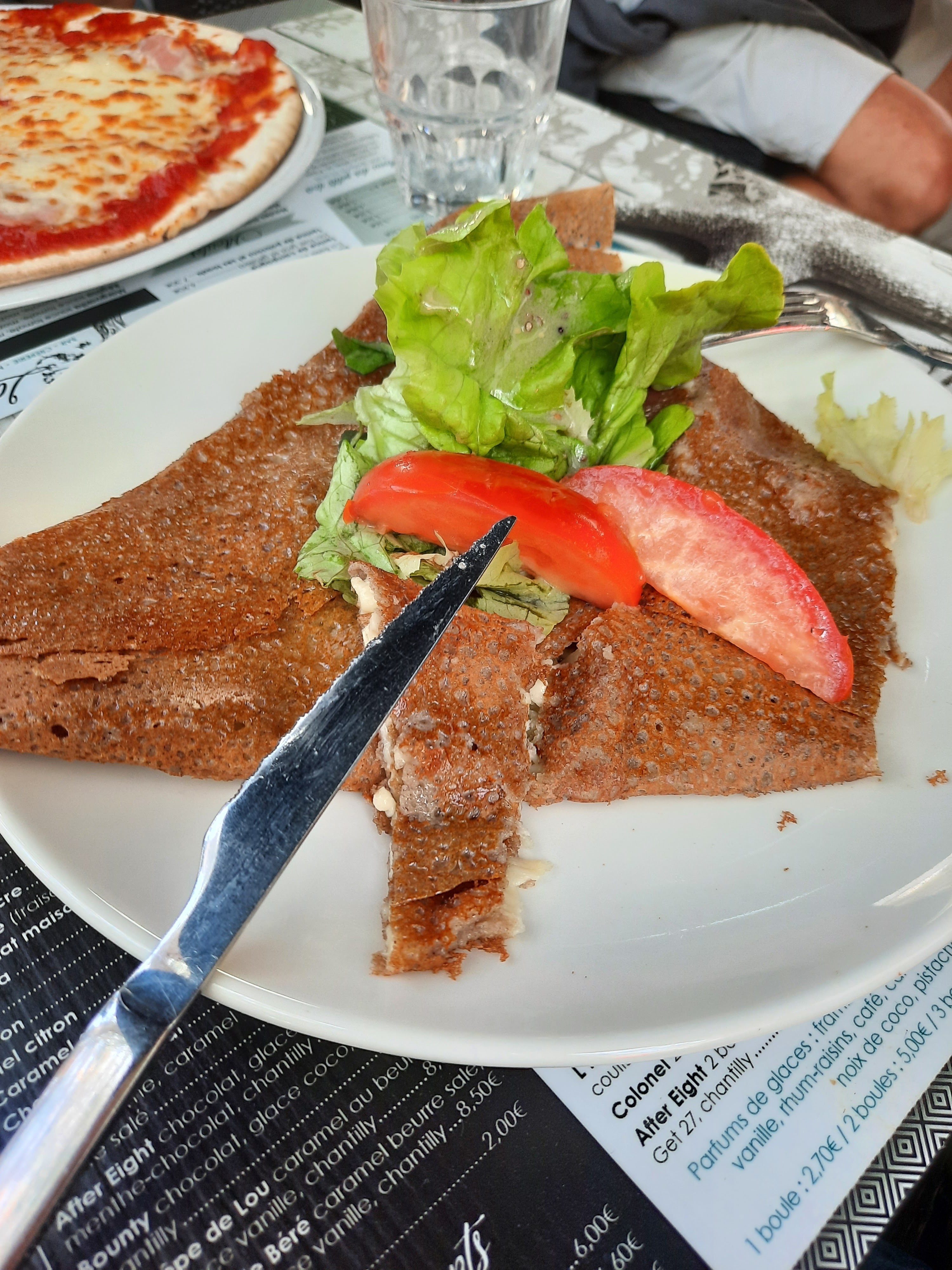 Très bonne crêperie, terrasse charmante et à l'ombre avec de la végétation. Très bonne galettes, crêpes et pizza !! Personnel accueillant