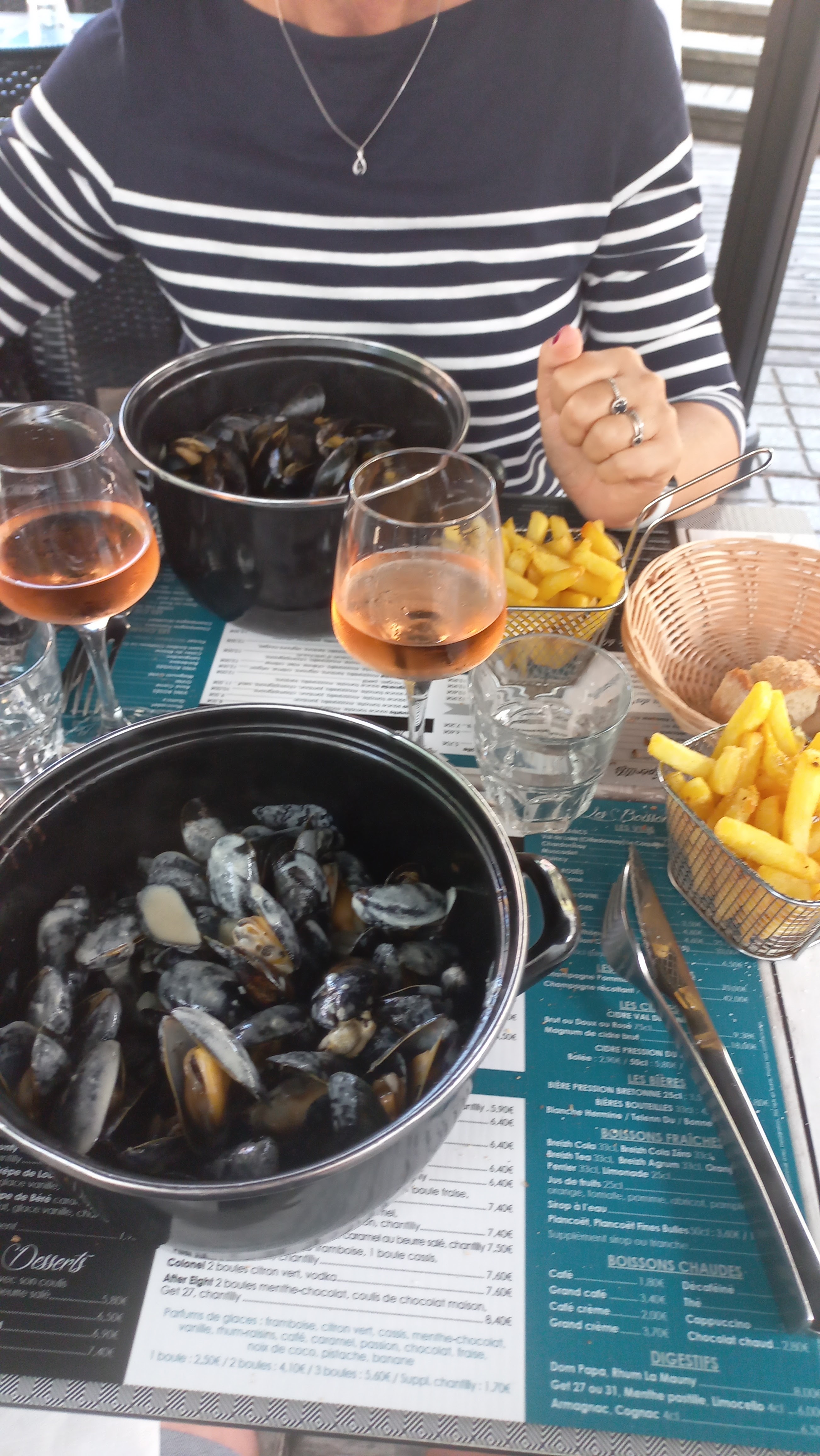 Rapide cuisine bonne et typique moules excellente crêpes très bonnes plutôt bien garnies Terrasse agréable Service rapide et agréable malgré le monde