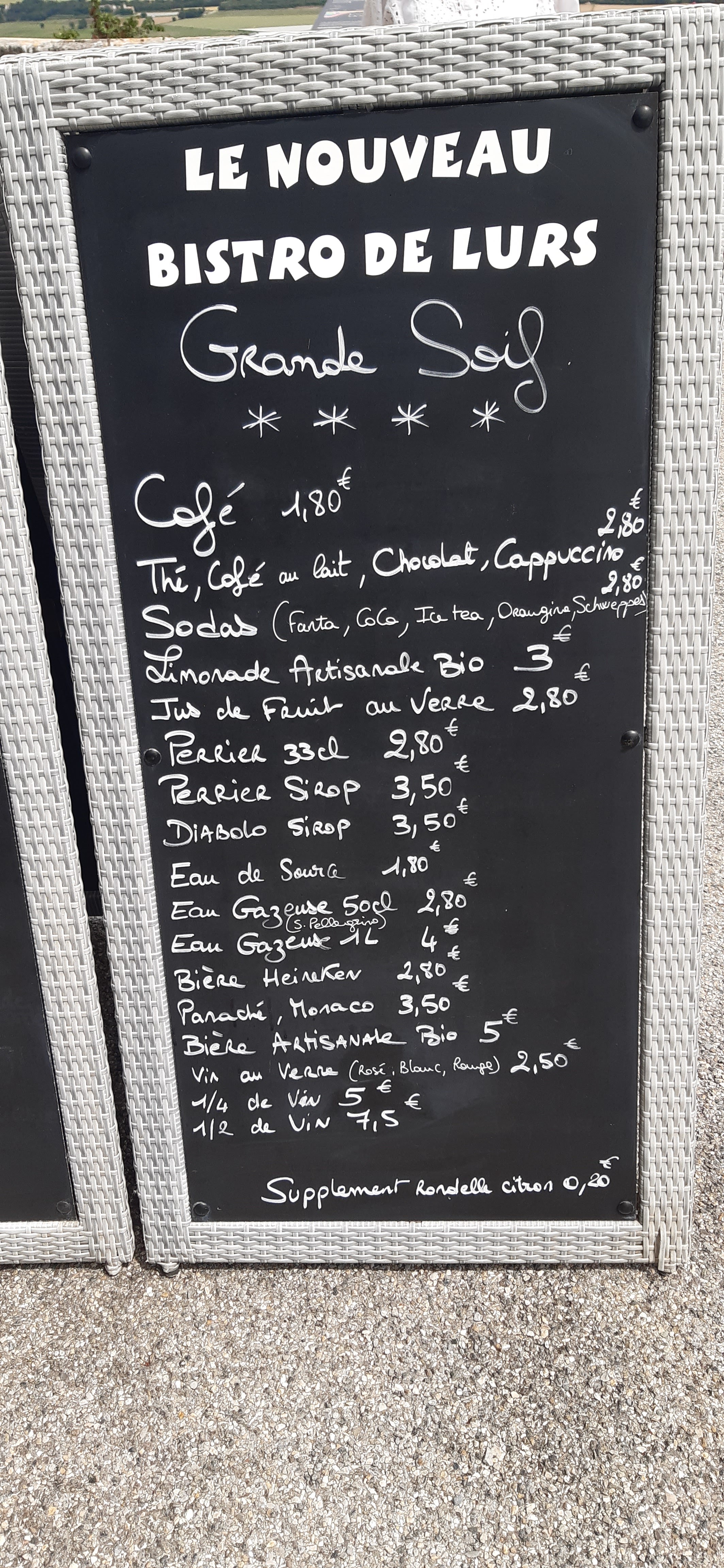 Quelles vues fantastiques jusqu'aux pré-Alpes. Une route raide et venteuse jusqu'au village de Lurs mais ça vaut le coup. Le nouveau bistro propose une bonne gamme de plats et de boissons, le service et les prix sont bons. (le producteur d'olives local a un magasin à côté)