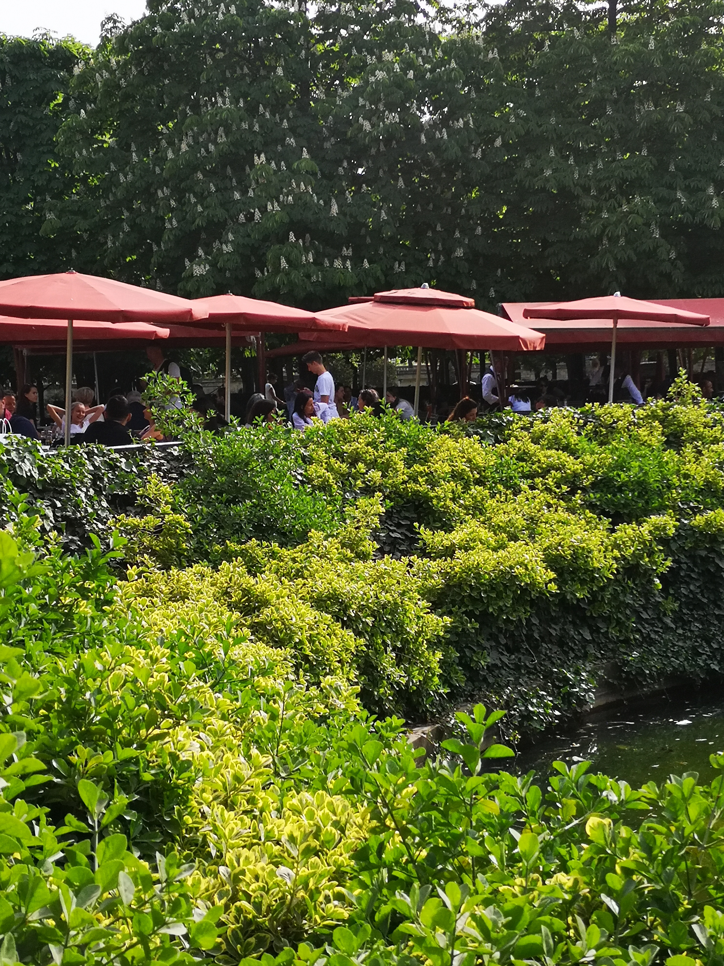 cet endrit est relaxant car on peut y consommer boissons glaces snacks legers au milieu du jardin des tuileries face a une sorte de marre ou des canards se croisent Le service est variable selon les serveurs