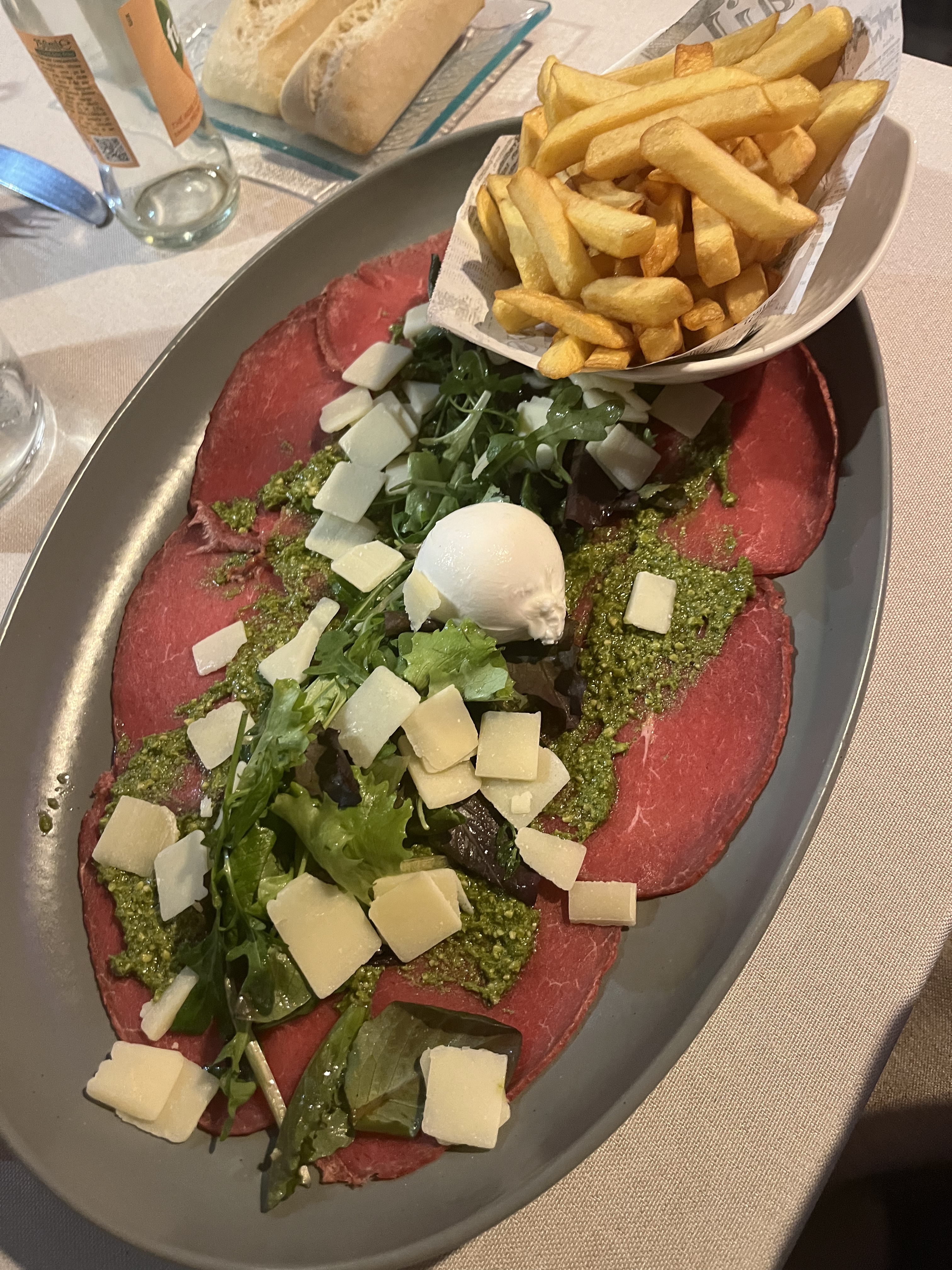 Lieu agréable. Patron gentil. Serveur oublie la moitie de ma commande. Sui végétarienne, risotto pas bon. De la bouillie. Au final j ai manger une frite sauce poivre. Aucune salade à la carte. Meme l eau plate n est pa indiquée. Tres decue.