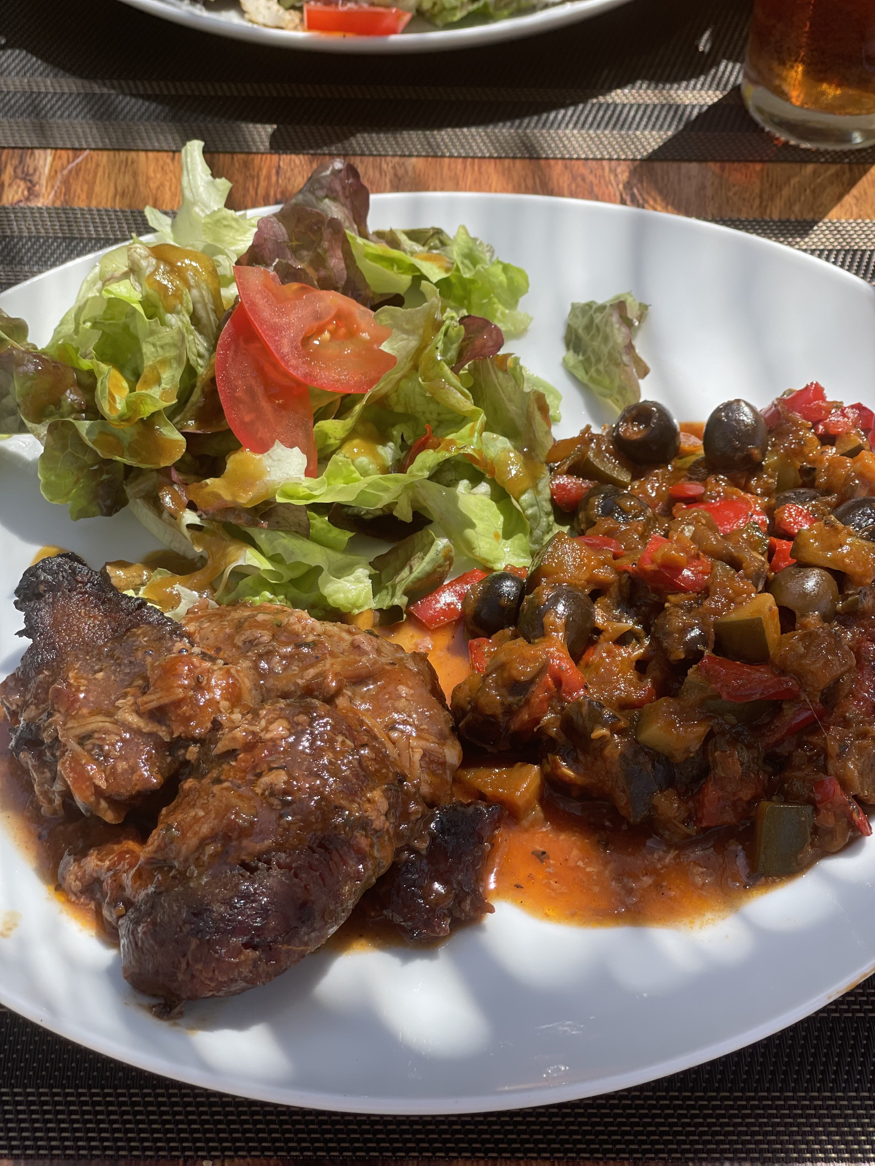 De passage à Rougon pour le déjeuner, après une randonnée, quoi de plus agréable que de s'installer à table sur la place de ce très joli village. L'accueil y est chaleureux. Une belle carte de viandes cuites au barbecue vous y attend (andouillettes, cochon, agneau, boeuf). La viande y est délicieuse, ce jour-là accompagnée de pomme-de-terres grenailles et d'une (divine) ratatouille. Bravo pour cette nouvelle adresse et belle continuation !