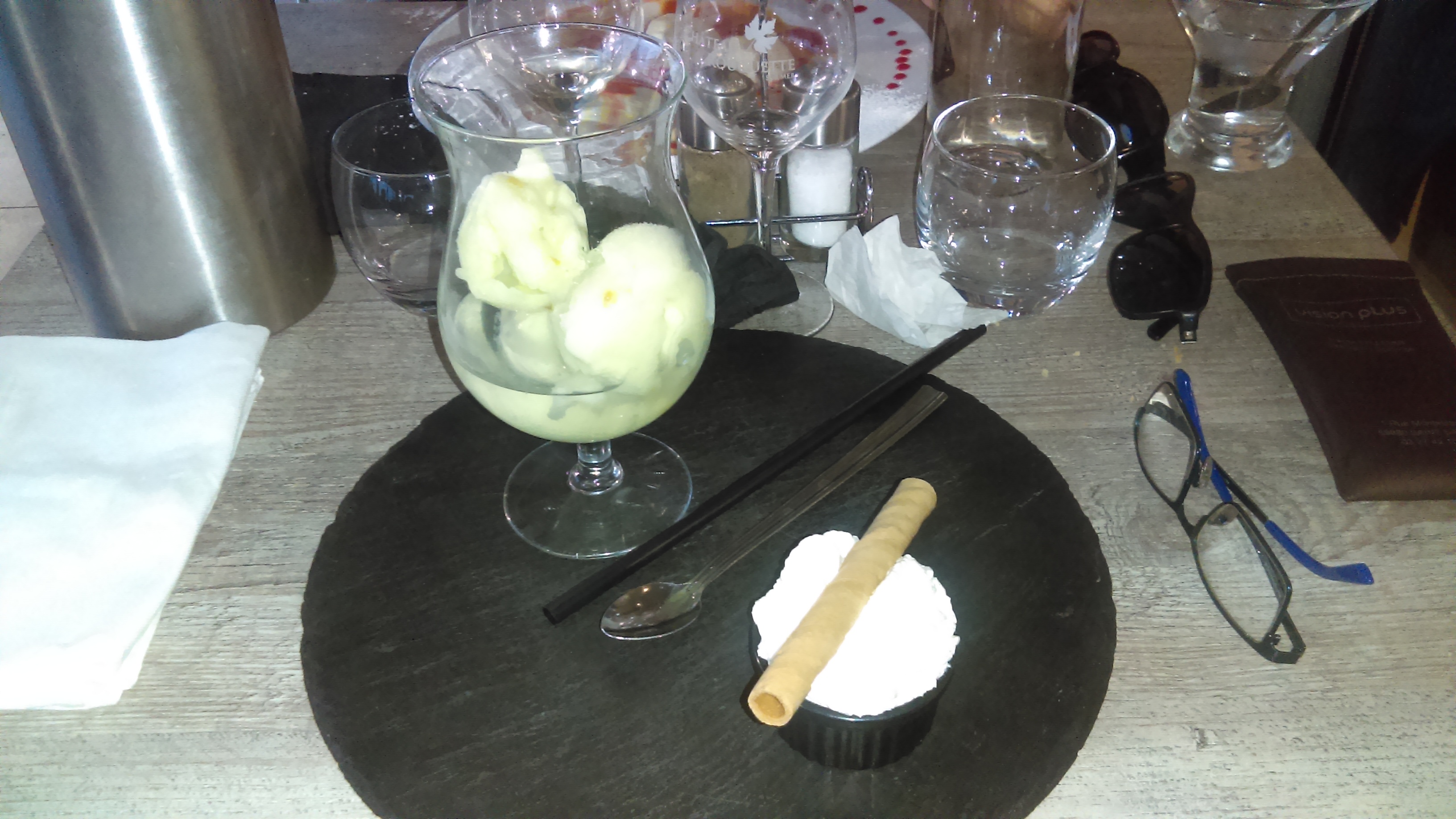 Restaurant non prévu mais très bonne initiative de notre part car le menu ceviche gambas banofee pour madame et crevettes daurade et tarte citron meringue était très bon. Deux serveur dont le chef de rang super sympa et très professionnel.